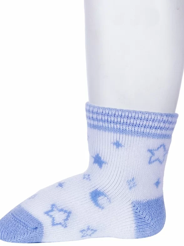 Межсезонные или зимние укороченные детские носки, цвет голубой-белый, теплые, состав: 80% хлопок, 19% полиамид, 1% эластан, фабричный артикул 21С-13/1СП. Производитель «Conte, Беларусь» под брендом «Conte».