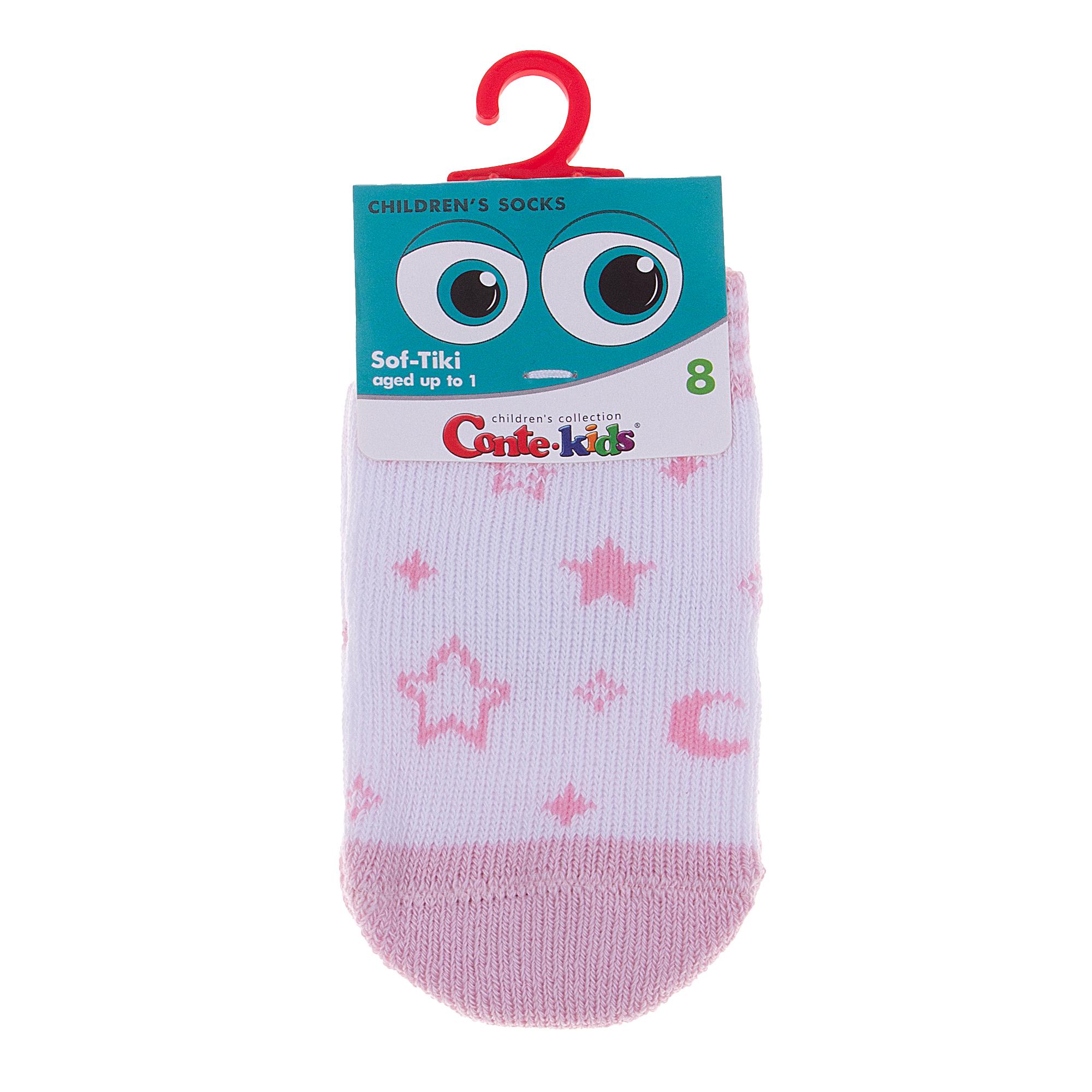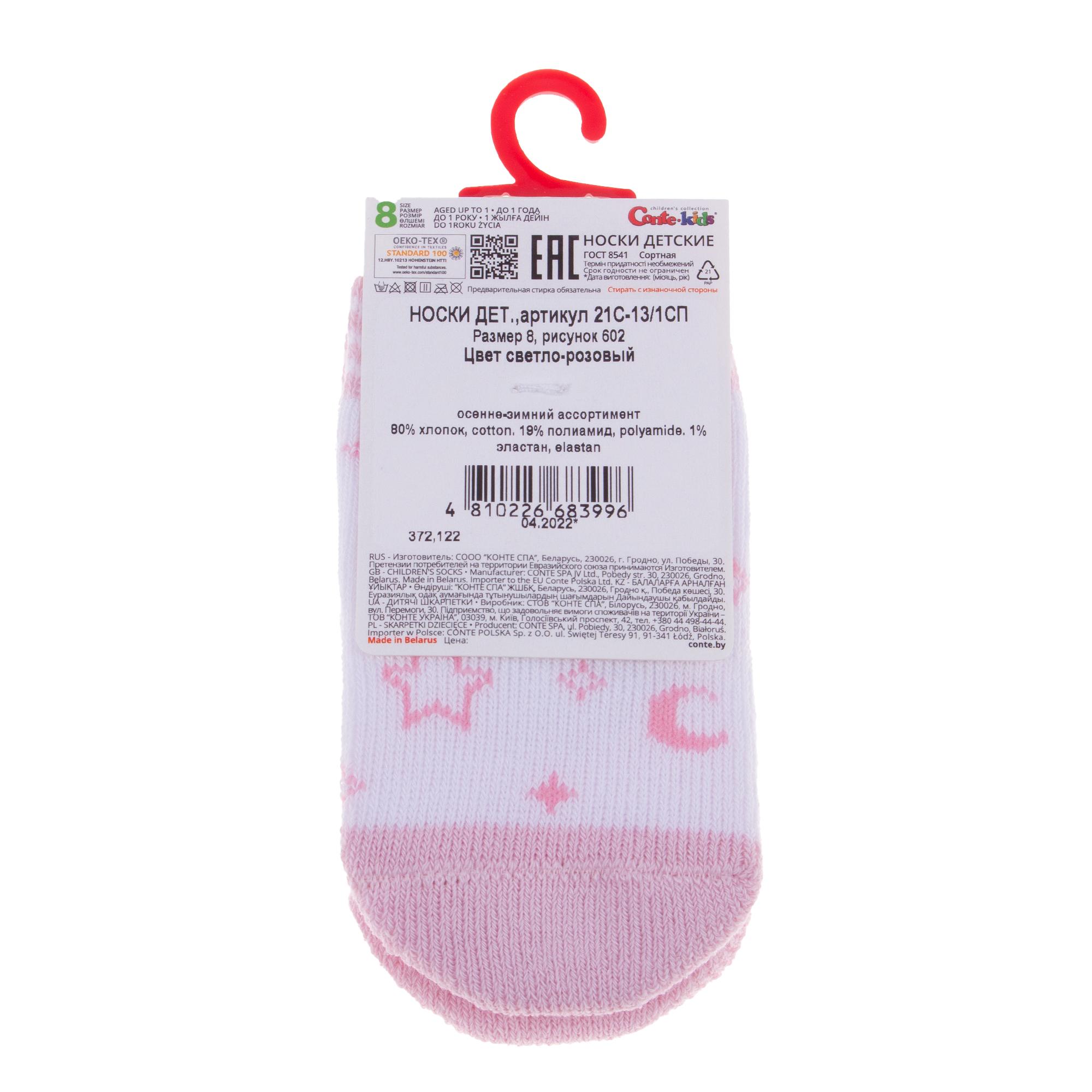 Межсезонные или зимние укороченные детские носки, цвет розовый-белый, теплые, состав: 80% хлопок, 19% полиамид, 1% эластан, фабричный артикул 21С-13/1СП. Производитель «Conte, Беларусь» под брендом «Conte».