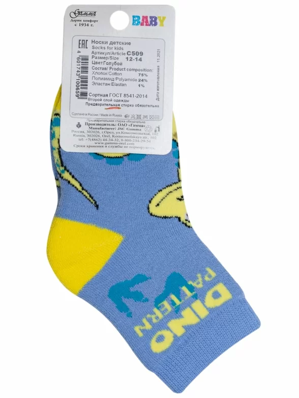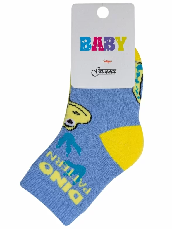 Зимние укороченные детские носки, цвет голубой, повседневные, теплые, махровые, шов обычный (не бесшовные), принт (рисунок): с узором, животные, состав: 75% хлопок, 24% полиамид, 1% эластан, арт. С509. Производитель «ГАММА» Россия под брендом «Гамма».