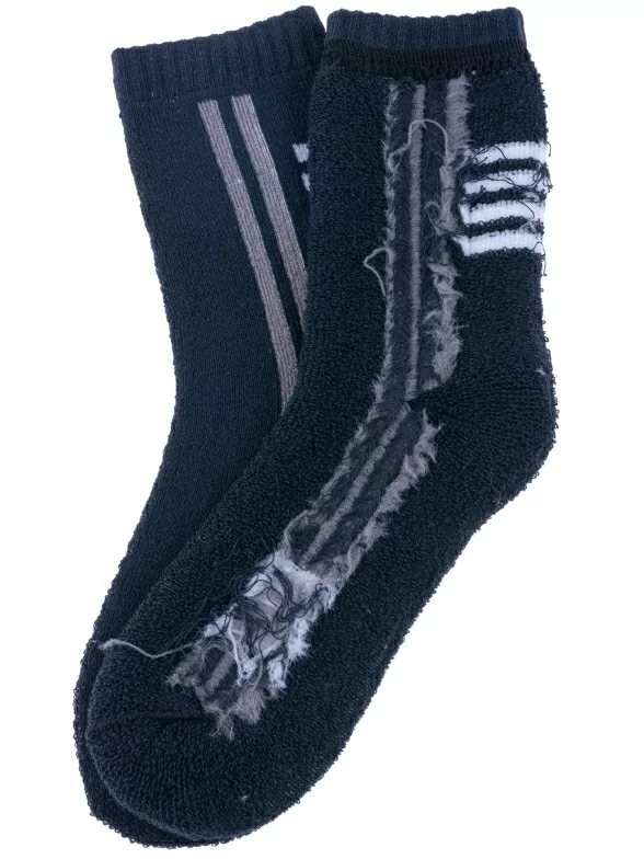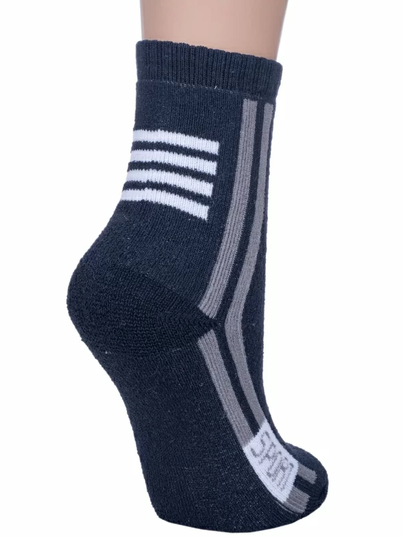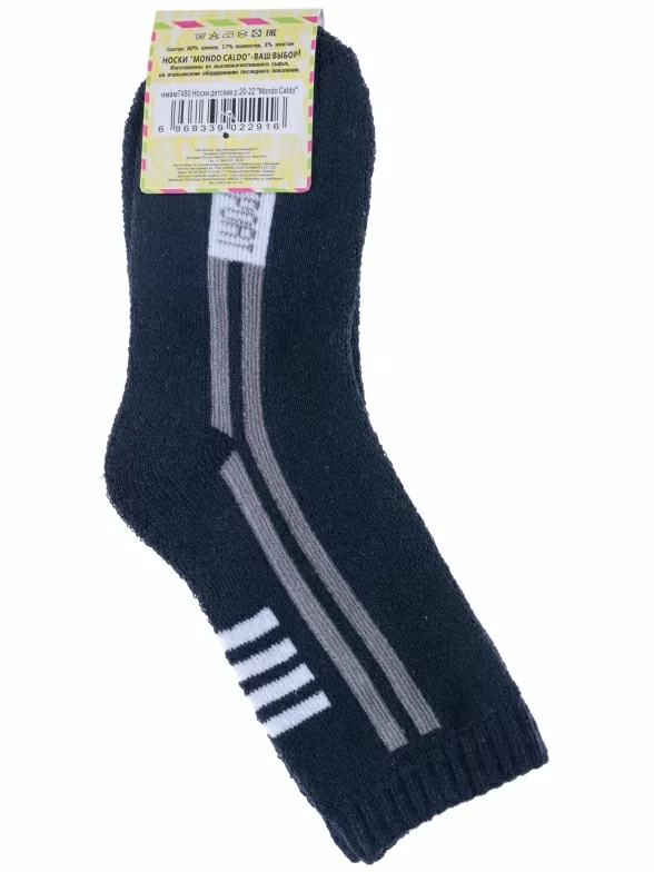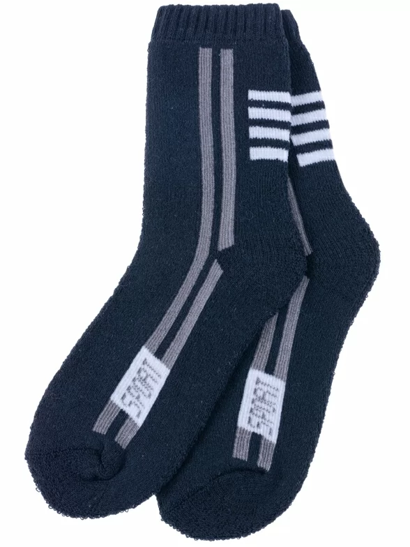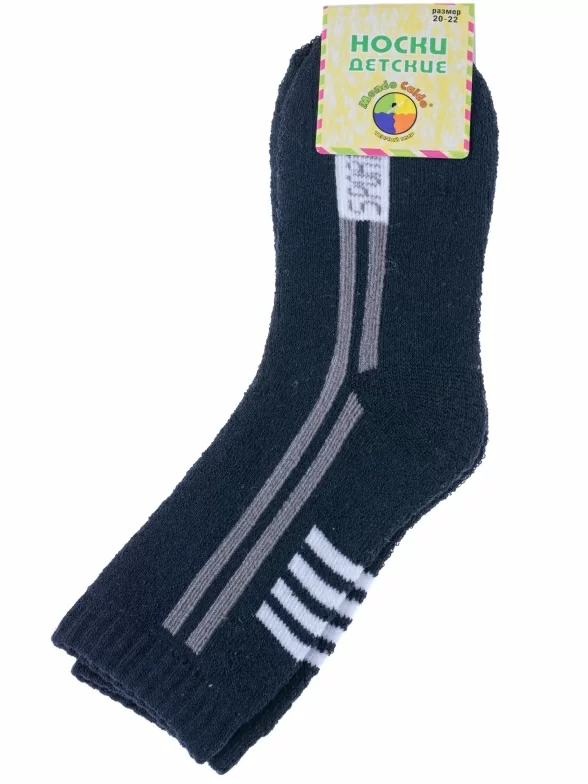 Круглогодичные или зимние средней длины детские носки, цвет темно-синий, теплые, спортивные, махровые, шов обычный (не бесшовные), принт (рисунок): полоски, надписи, однотонный, состав: 80% хлопок, 17% полиэстер, 3% эластан, арт. 7480. Производитель «Китай, страна бренда - Россия» под брендом «Hobby line».