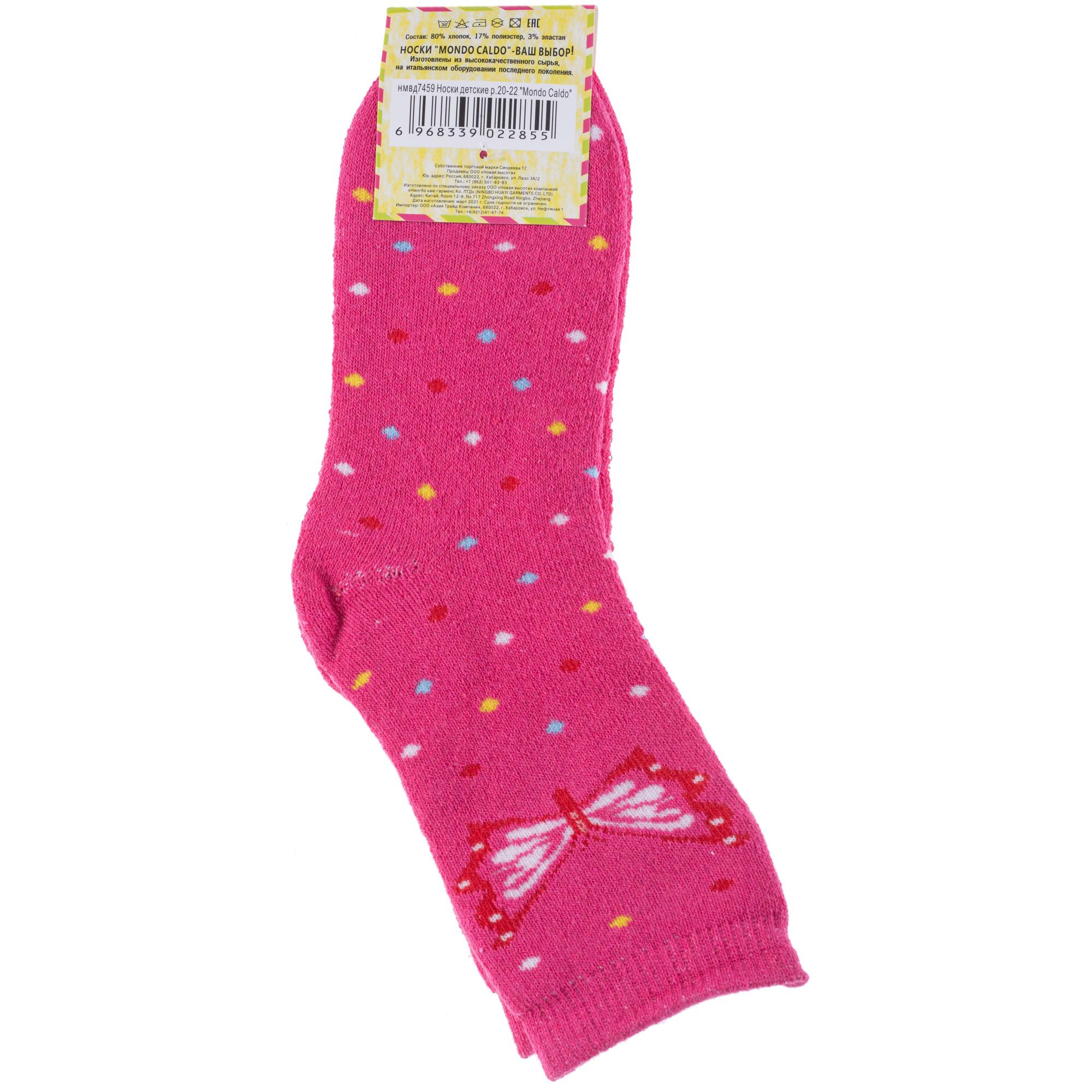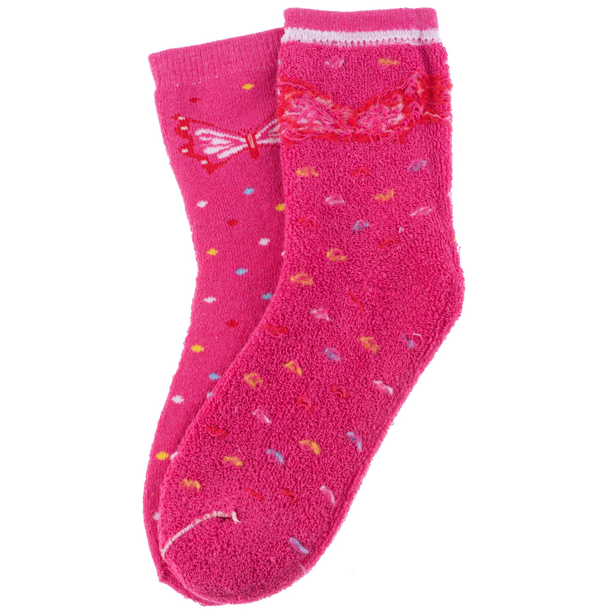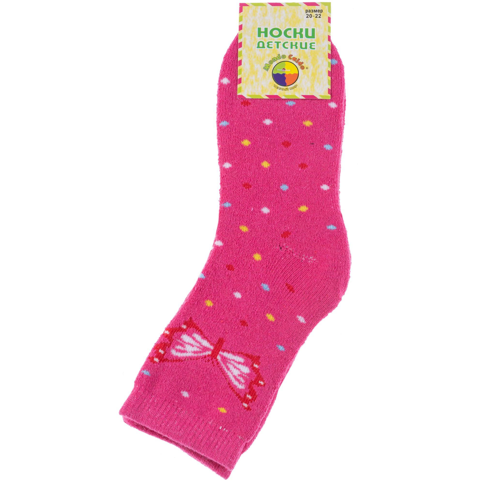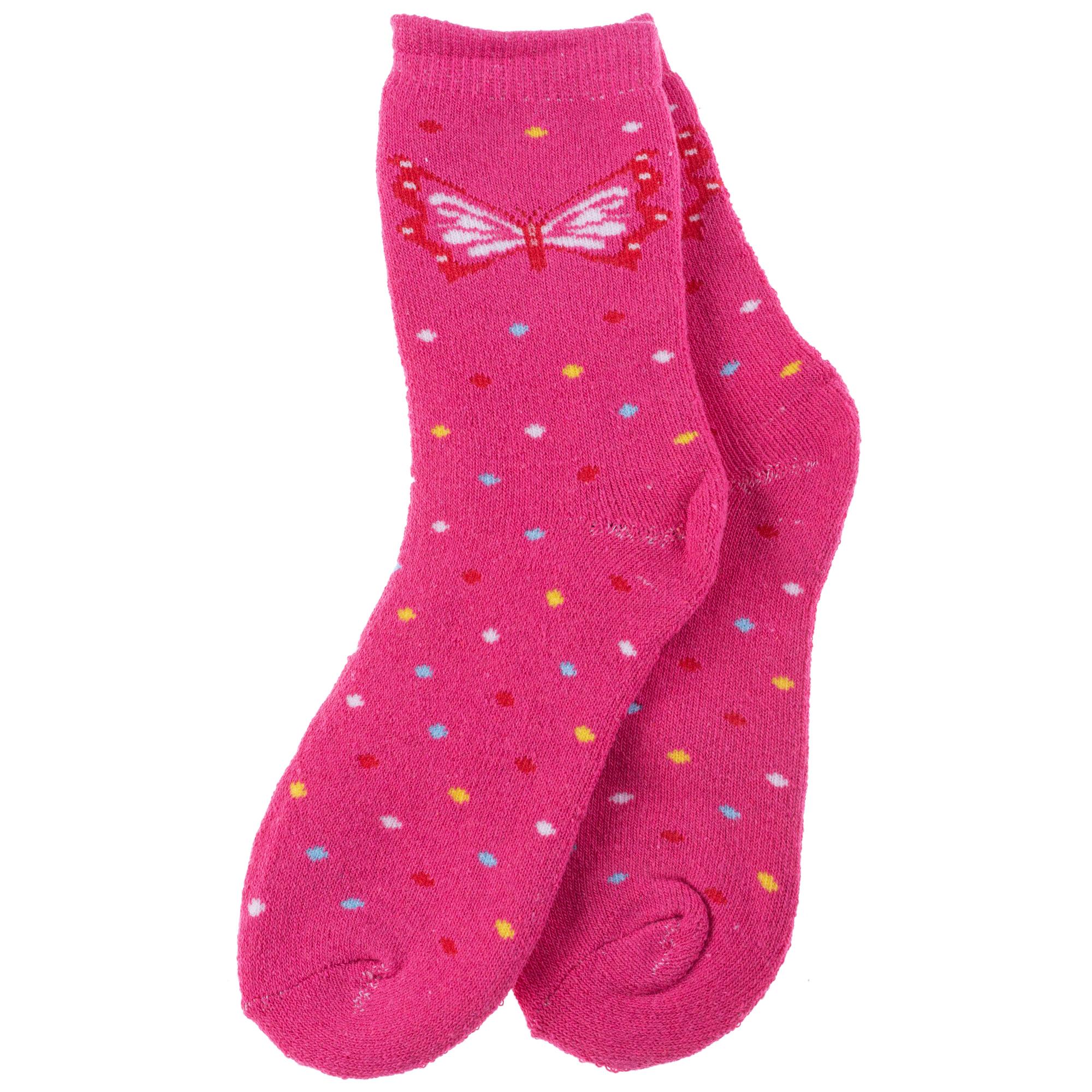 Зимние укороченные детские носки, цвет розовый, теплые, махровые, повседневные, шов обычный (не бесшовные), принт (рисунок): бабочки / бантики, с узором, состав: 80% хлопок, 17% полиэстер, 3% эластан, арт. 7459. Производитель «Китай, страна бренда - Россия» под брендом «Hobby line».
