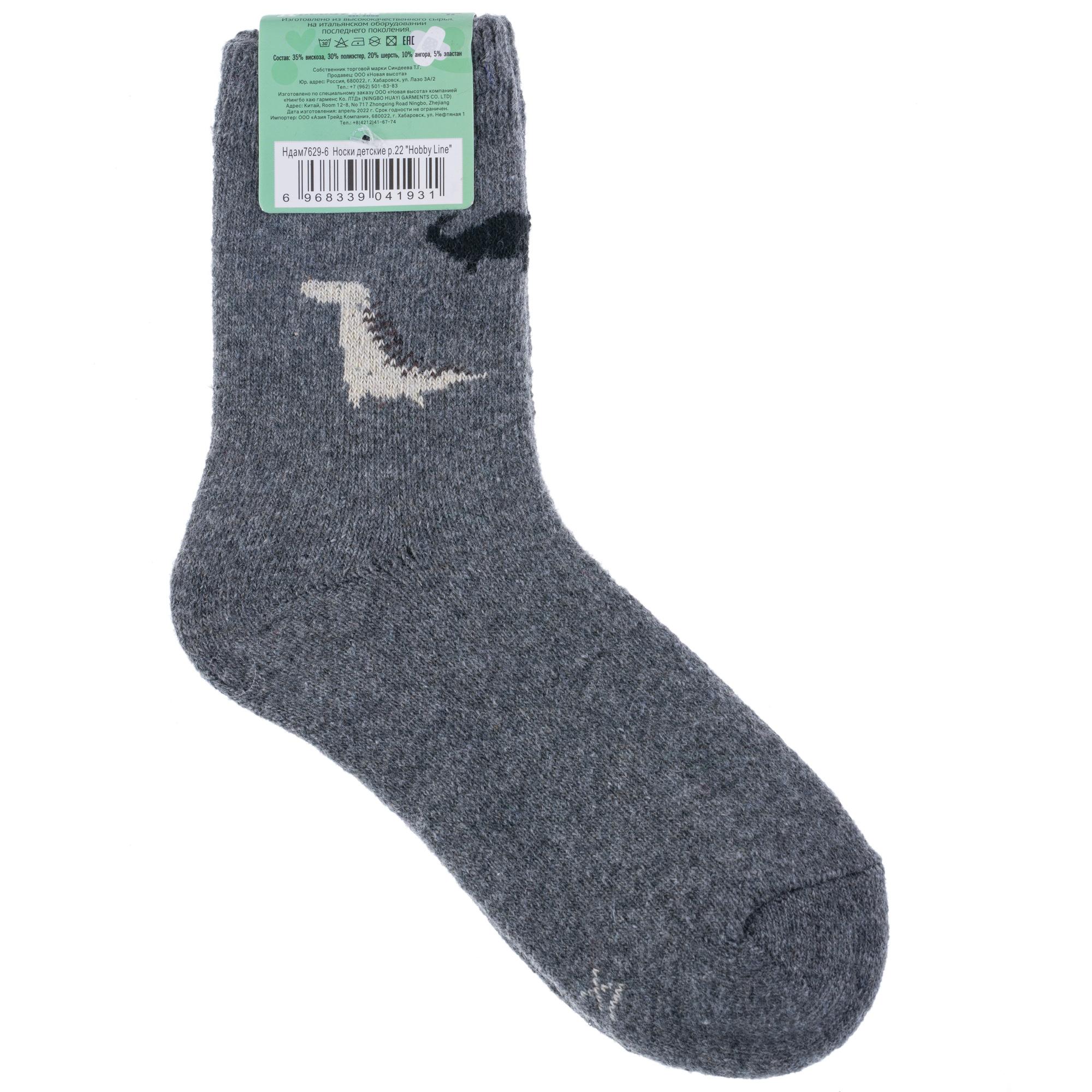 Зимние укороченные детские носки, цвет серый, теплые, махровые, повседневные, шов обычный (не бесшовные), принт (рисунок): животные, с узором, состав: 35% вискоза, 30% полиэстер, 20% шерсть, 10% ангора, 5% эластан, арт. 7629-6. Производитель «Китай, страна бренда - Россия» под брендом «Hobby line».
