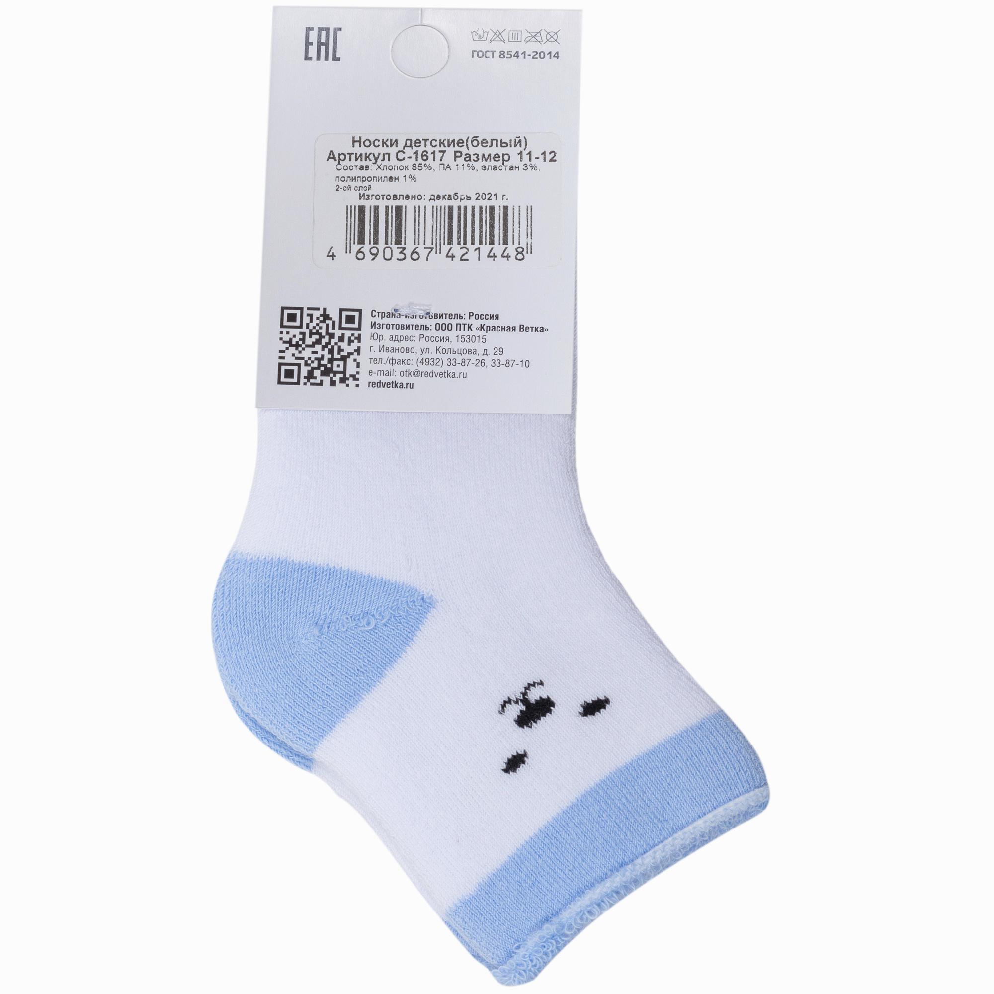 Детские махровые носки "Красная ветка" С-1617, БЕЛЫЕ с голубым
