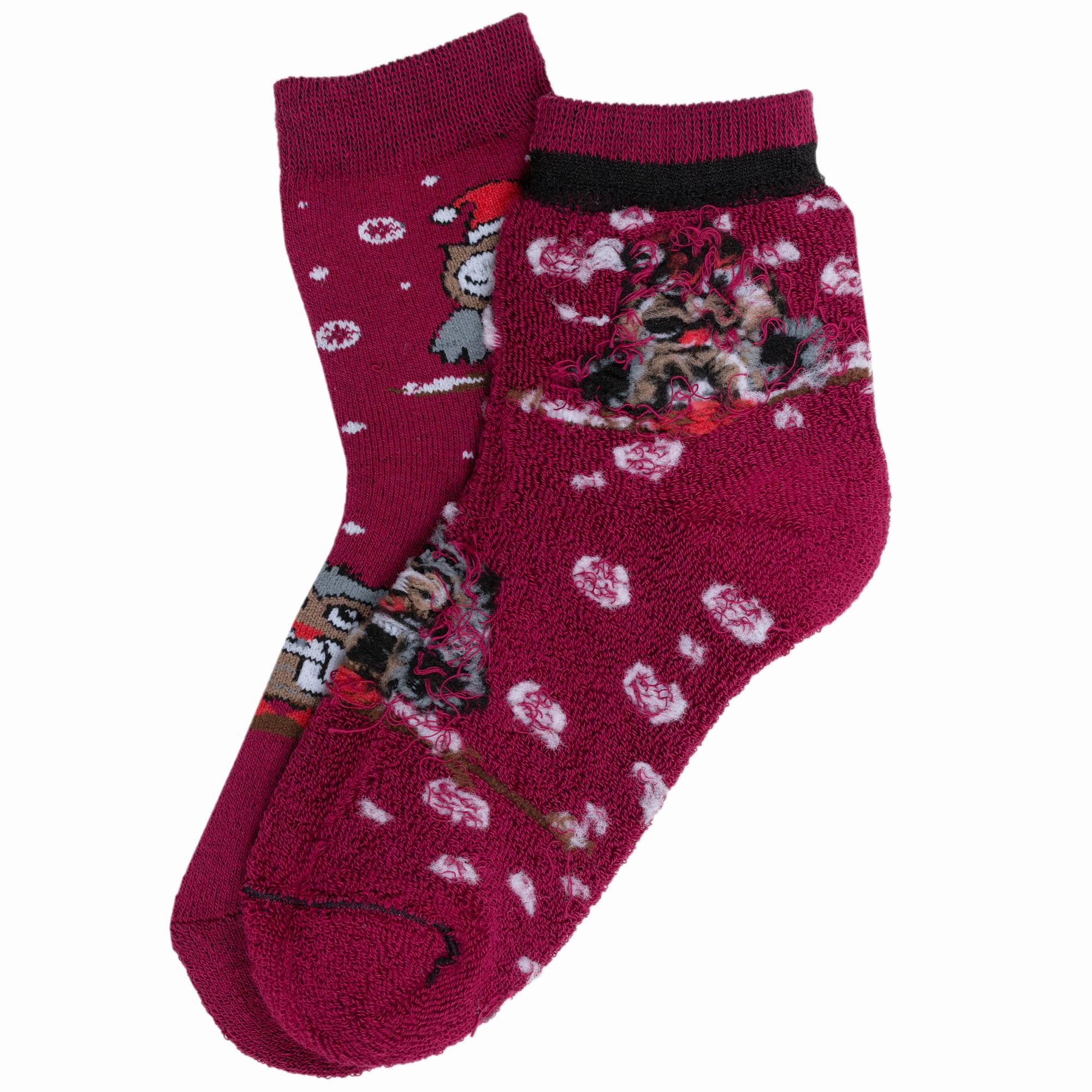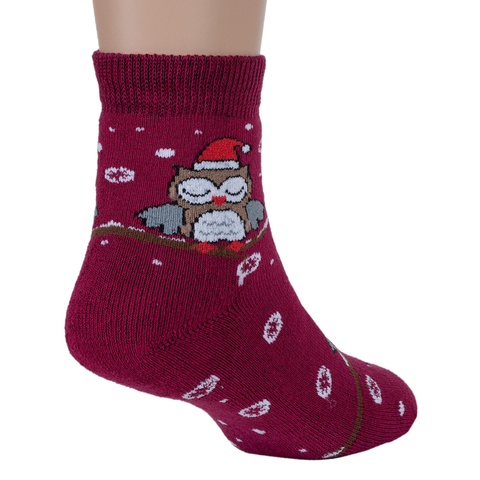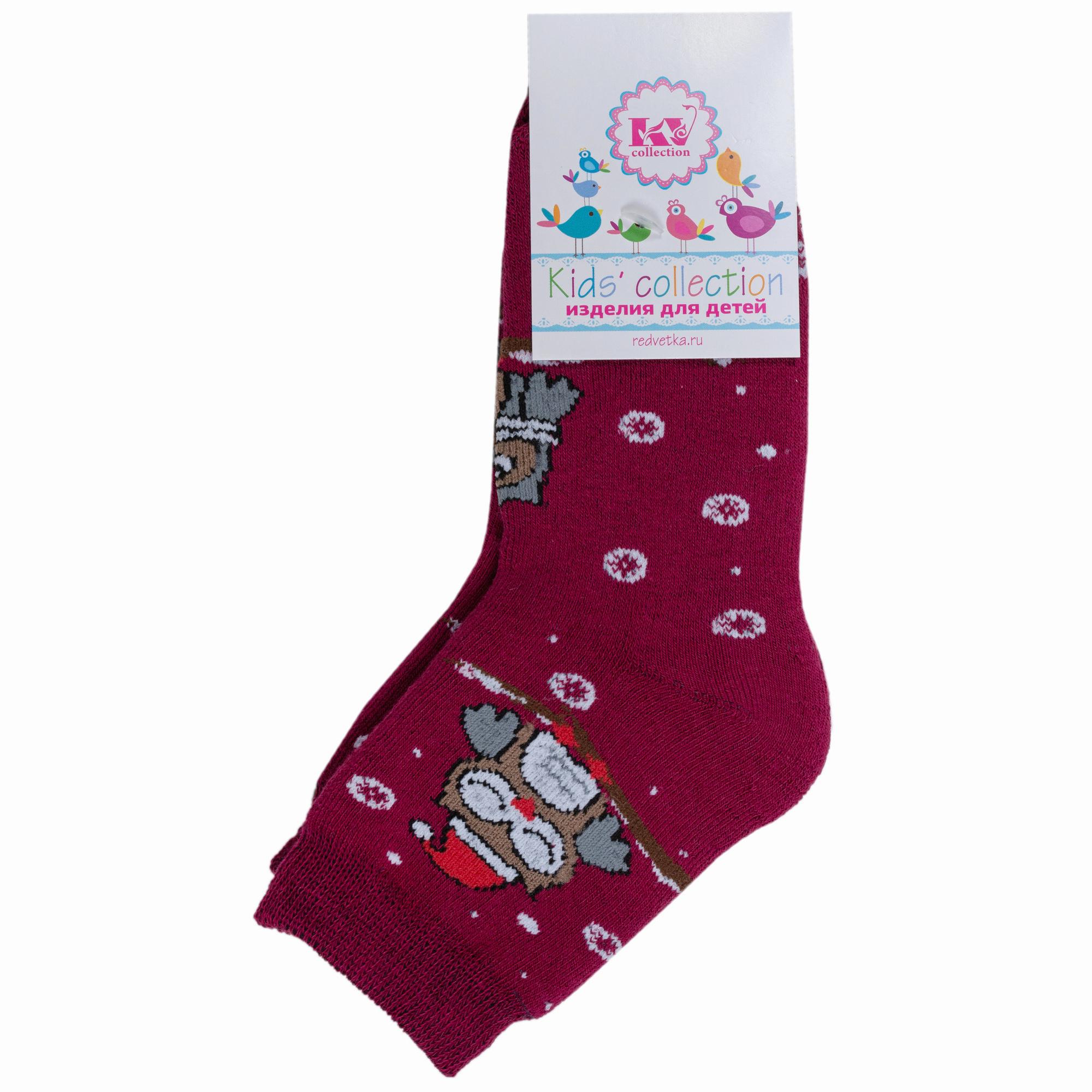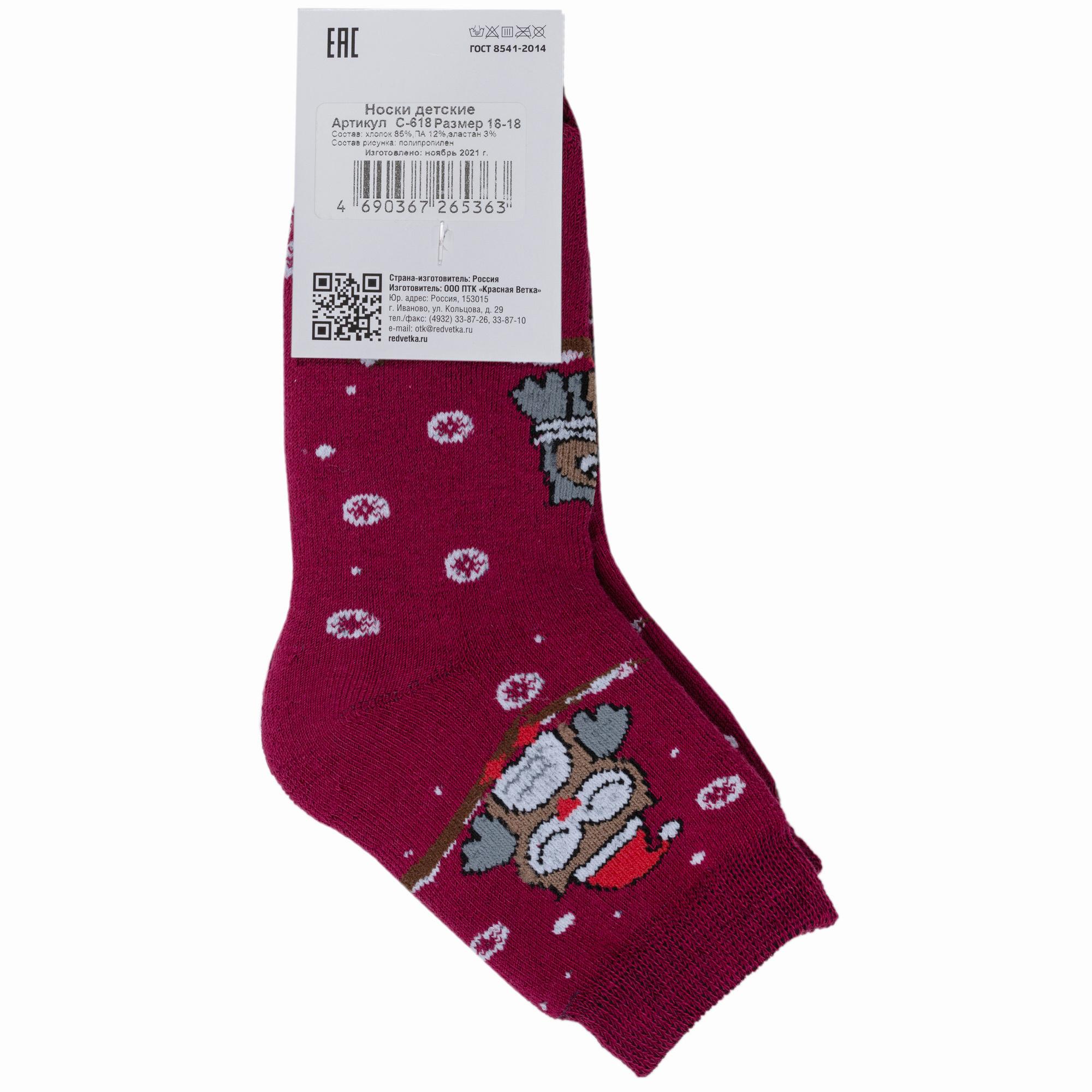 Зимние укороченные детские носки, цвет бордовый, теплые, махровые, повседневные, возможно бесшовные, принт (рисунок): новый год, с узором, крупные контрастные рисунки, состав: 73% хлопок, 10% полиамид, 14% полипропилен, 3% эластан, арт. С-618. Производитель «КРАСНАЯ ВЕТКА» Россия под брендом «Красная ветка».