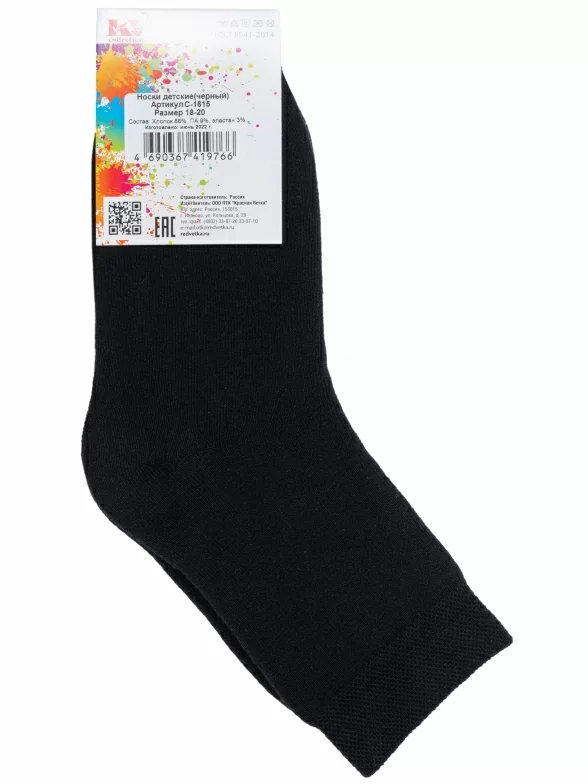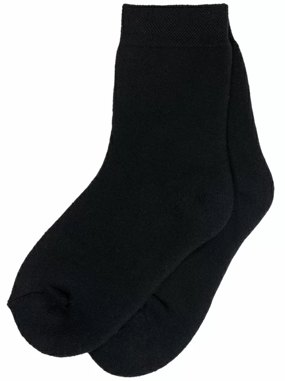 Зимние средней длины детские носки, цвет черный, махровые, теплые, классические, возможно бесшовные, принт (рисунок): однотонный, без рисунков/узоров, состав: 88% хлопок, 9% полиамид, 3% эластан, арт. С-1615. Производитель «КРАСНАЯ ВЕТКА» Россия под брендом «Красная ветка».