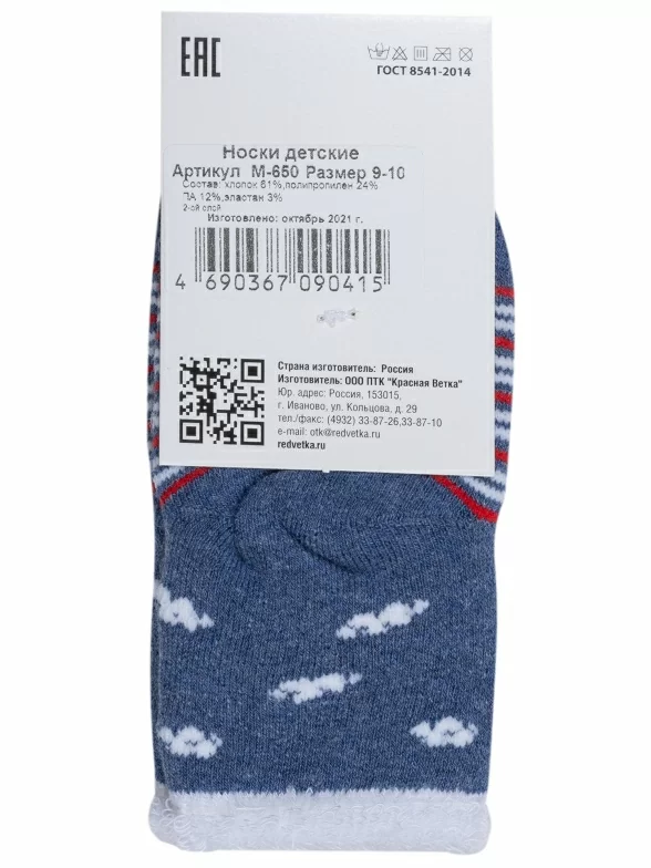 Детские махровые носки "Красная ветка", М-650, ДЖИНС