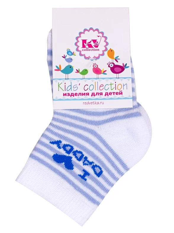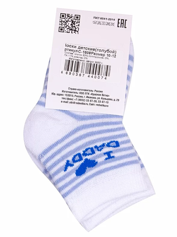 Межсезонные или зимние укороченные детские носки, цвет голубой, прикольные, состав: 83% хлопок, 11% полиамид, 3% полипропилен, 3% эластан, фабричный артикул С-1608. Производитель «КРАСНАЯ ВЕТКА» Россия под брендом «Красная ветка».
