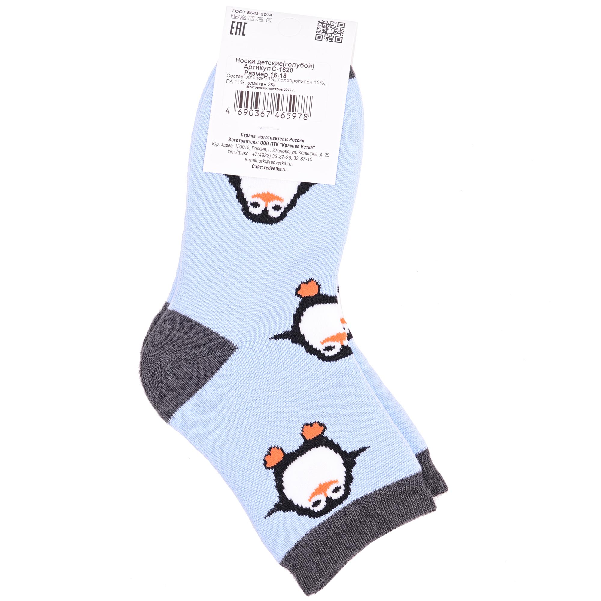 Зимние или межсезонные укороченные детские носки, цвет голубой, теплые, состав: 71% хлопок, 15% полипропилен, 11% полиамид, 3% эластан, арт. С-1620. Производитель «КРАСНАЯ ВЕТКА» Россия под брендом «Красная ветка».