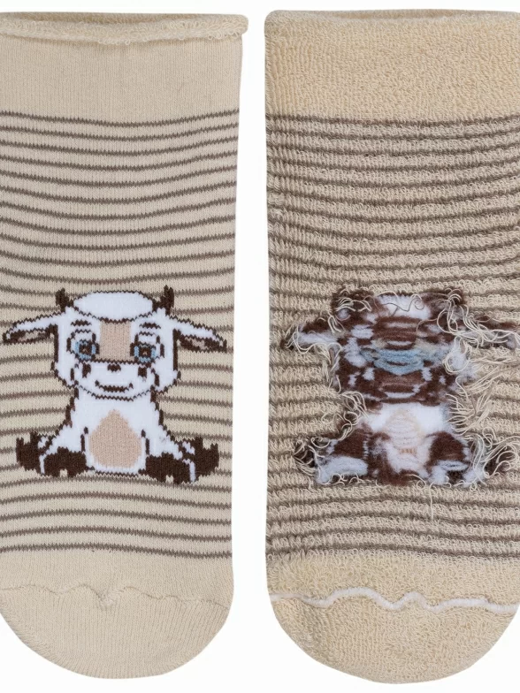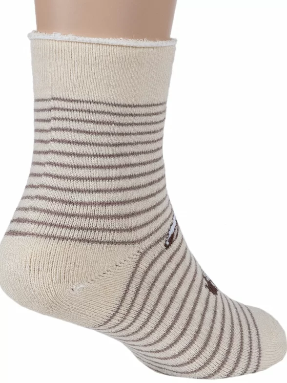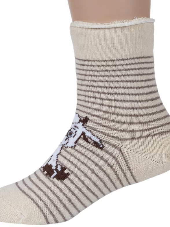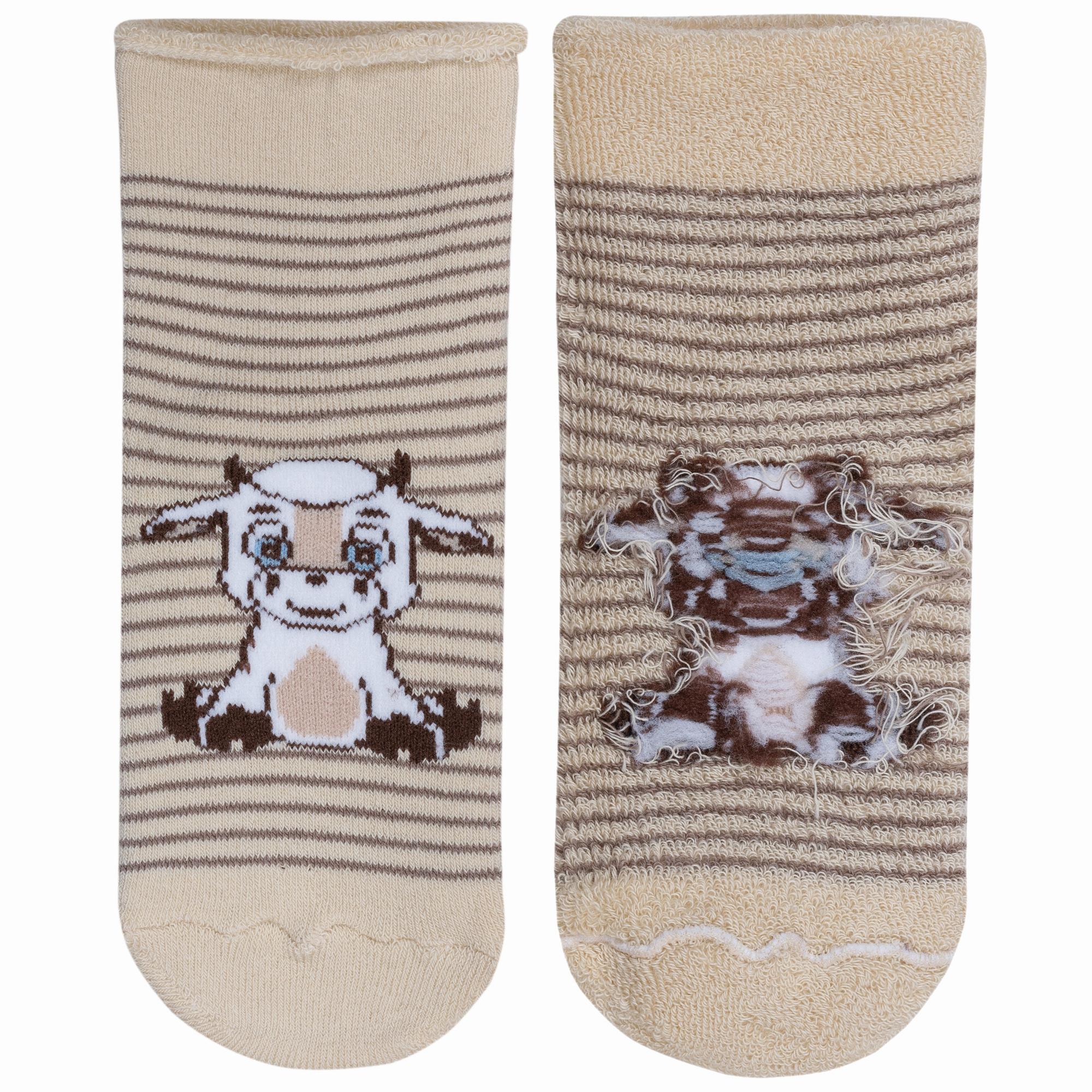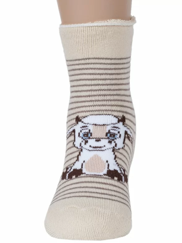 Зимние укороченные детские носки, цвет бежевый, повседневные, махровые, теплые, возможно бесшовные, принт (рисунок): животные, с узором, крупные контрастные рисунки, состав: 77% хлопок, 10% полиамид, 10% полипропилен, 3% эластан, арт. С-1603. Производитель «КРАСНАЯ ВЕТКА» Россия под брендом «Красная ветка».