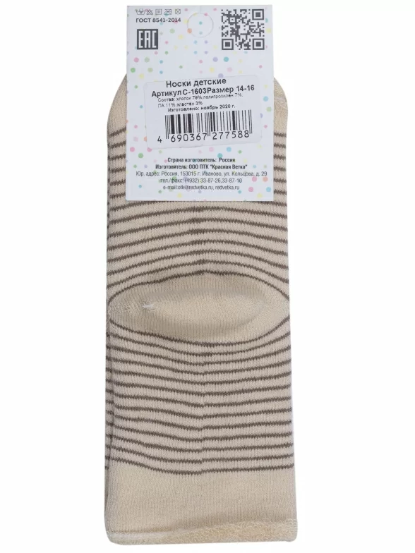 Детские махровые носки "Красная ветка", С-1603, БЕЖЕВЫЕ