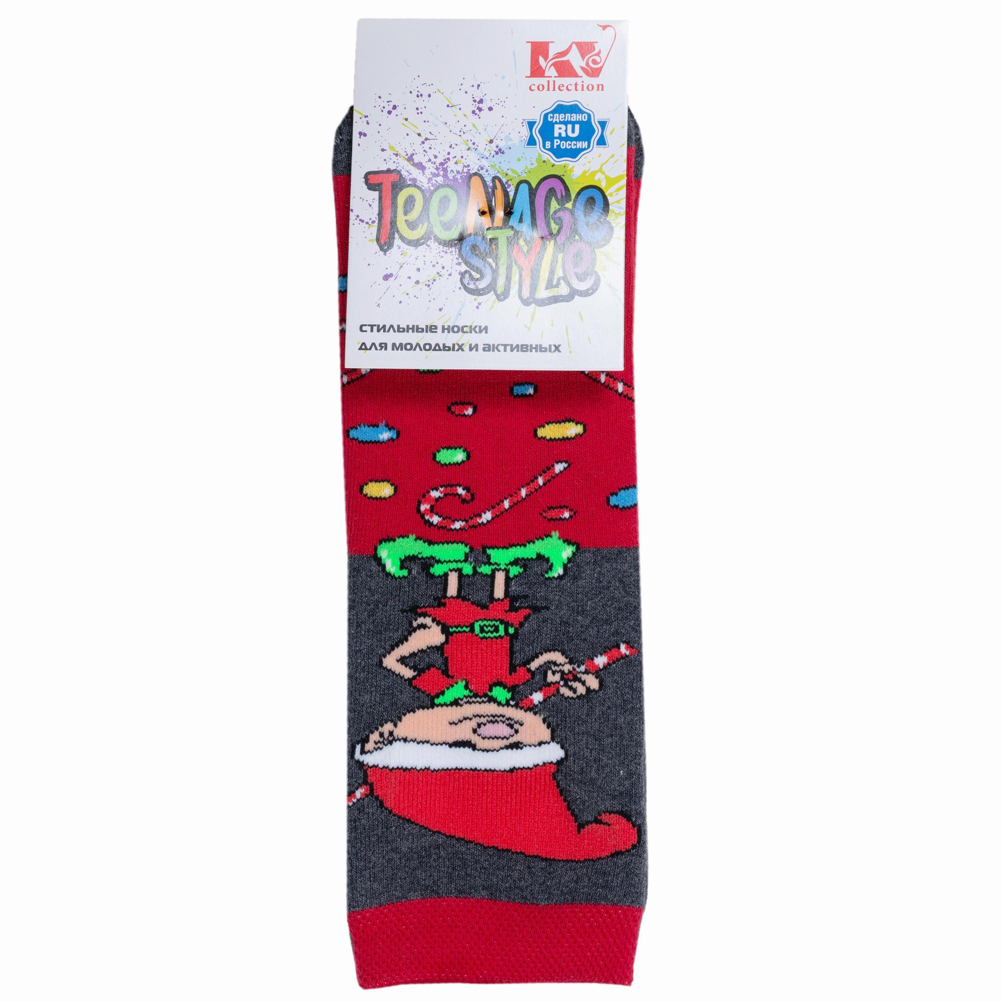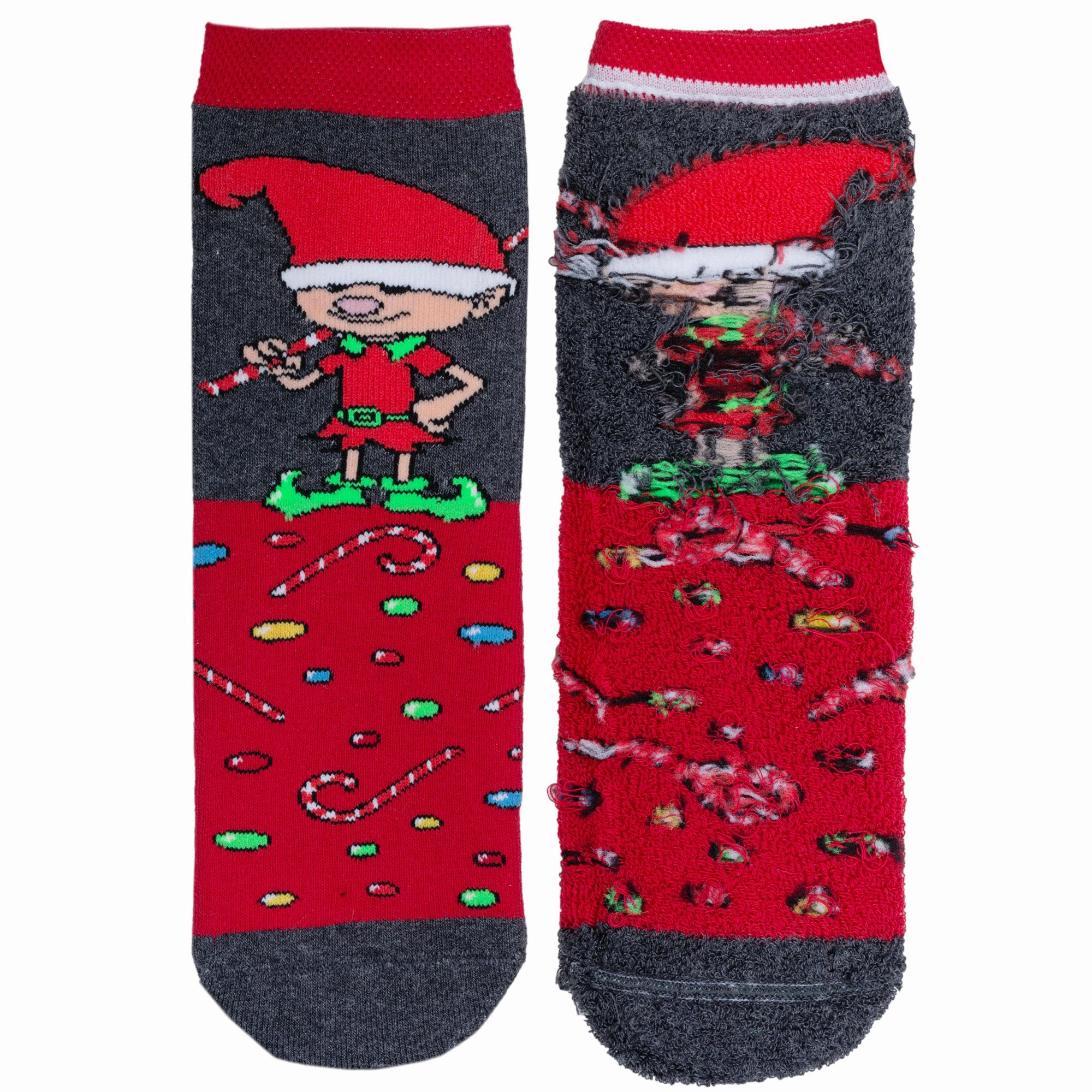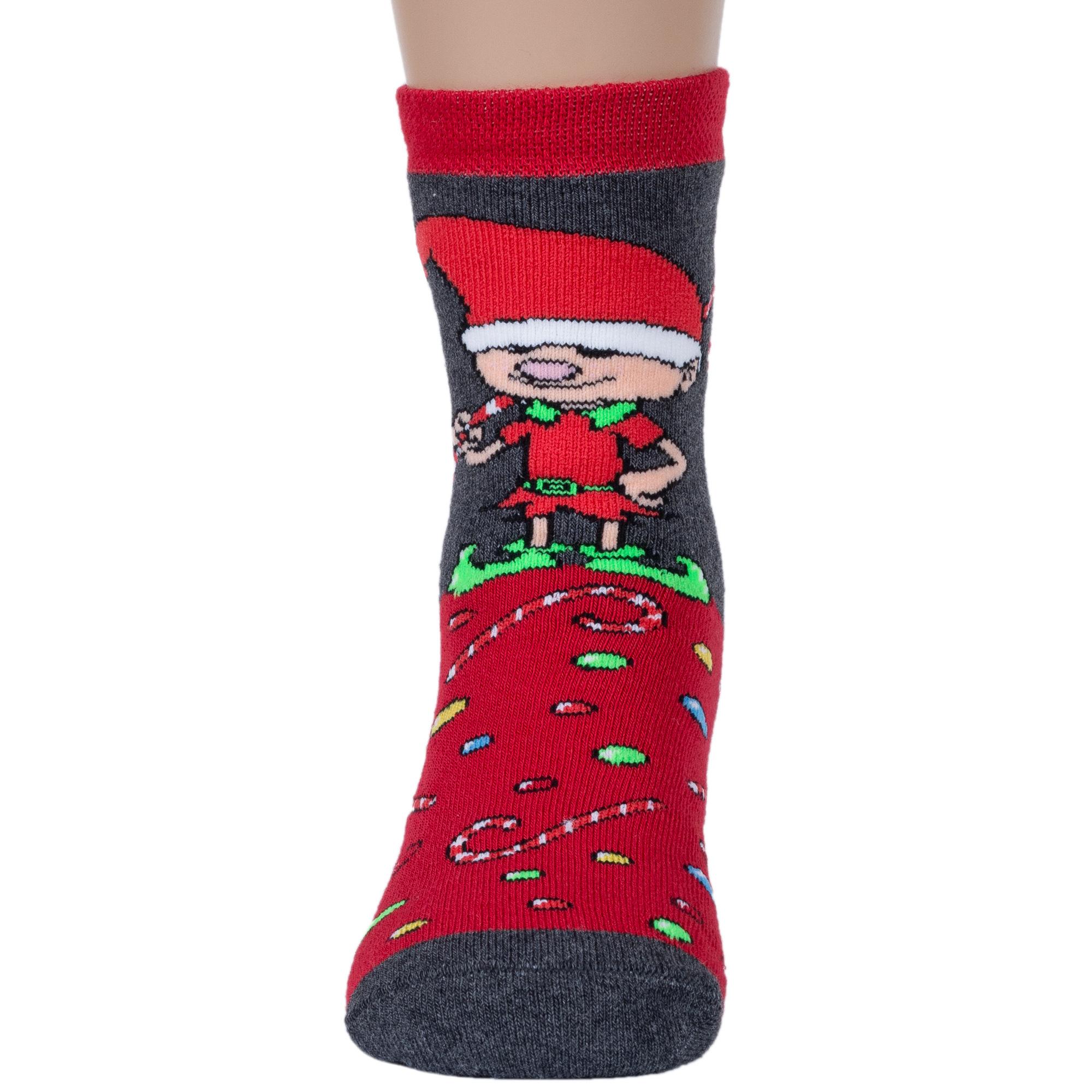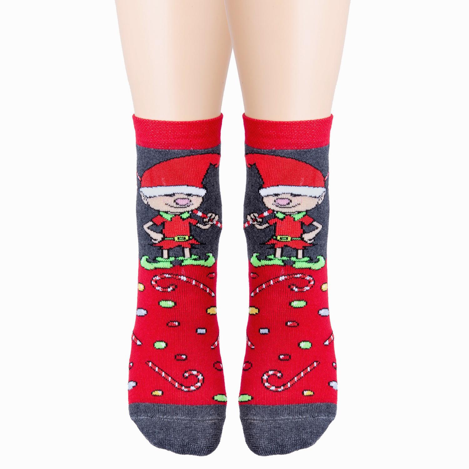 Зимние укороченные детские носки, цвет красный, теплые, махровые, повседневные, возможно бесшовные, принт (рисунок): новый год, с узором, крупные контрастные рисунки, состав: 58% хлопок, 16% полиамид, 21% полипропилен, 5% эластан, арт. С-627. Производитель «КРАСНАЯ ВЕТКА» Россия под брендом «Красная ветка».