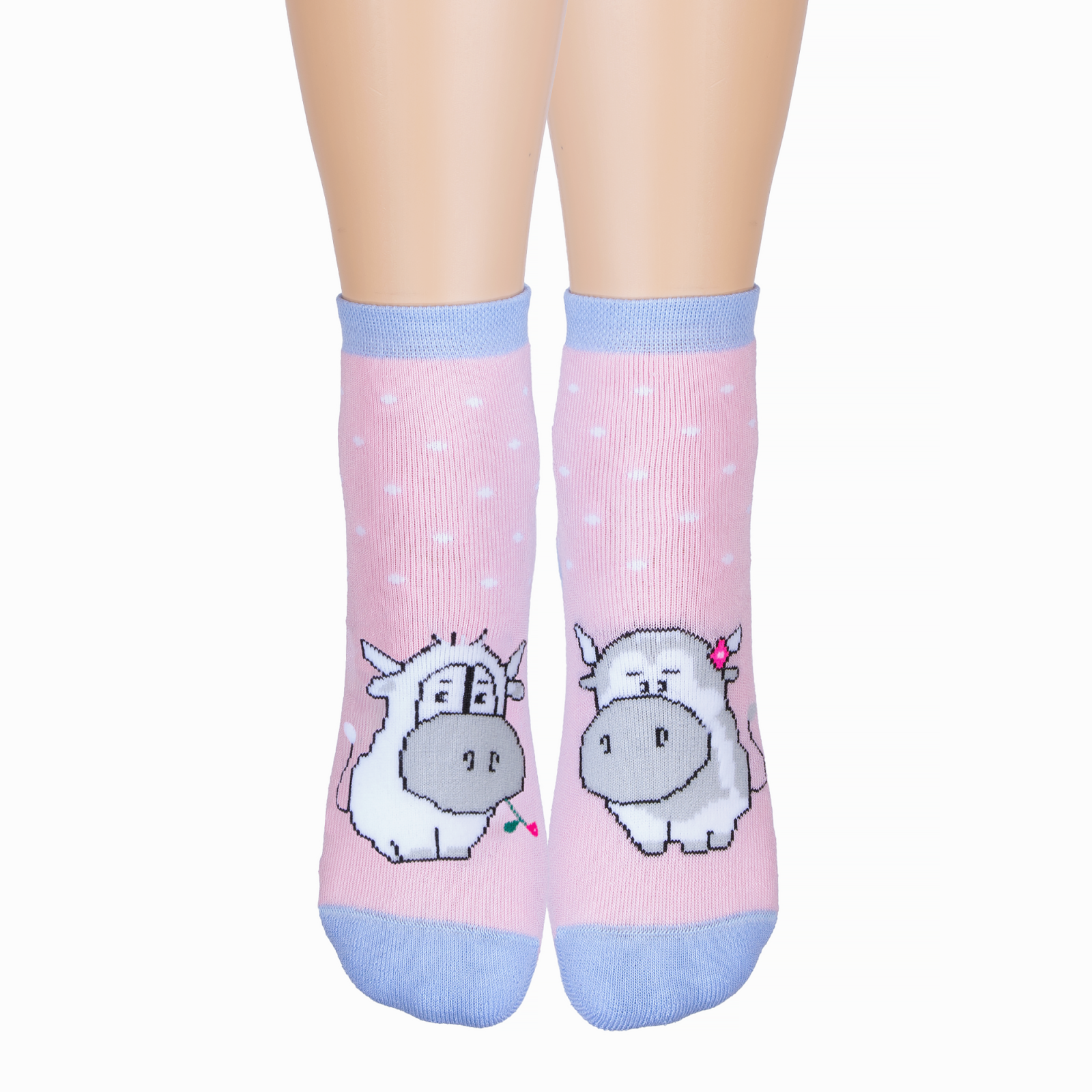 Зимние укороченные детские носки, цвет розовый, повседневные, махровые, разного цвета, теплые, возможно бесшовные, принт (рисунок): животные, с узором, состав: 77% хлопок, 10% полиамид, 10% полипропилен, 3% эластан, арт. С-1602. Производитель «КРАСНАЯ ВЕТКА» Россия под брендом «Красная ветка».