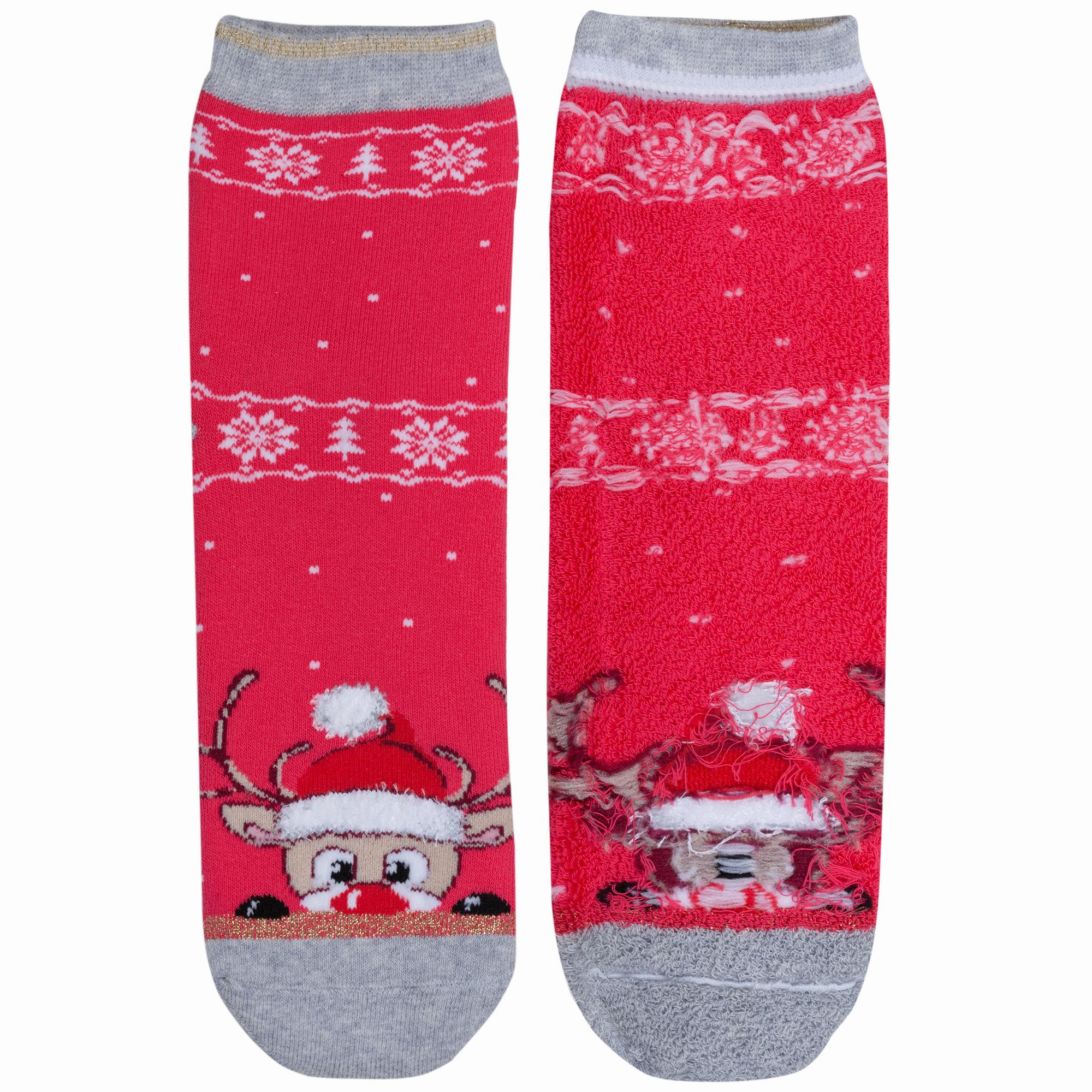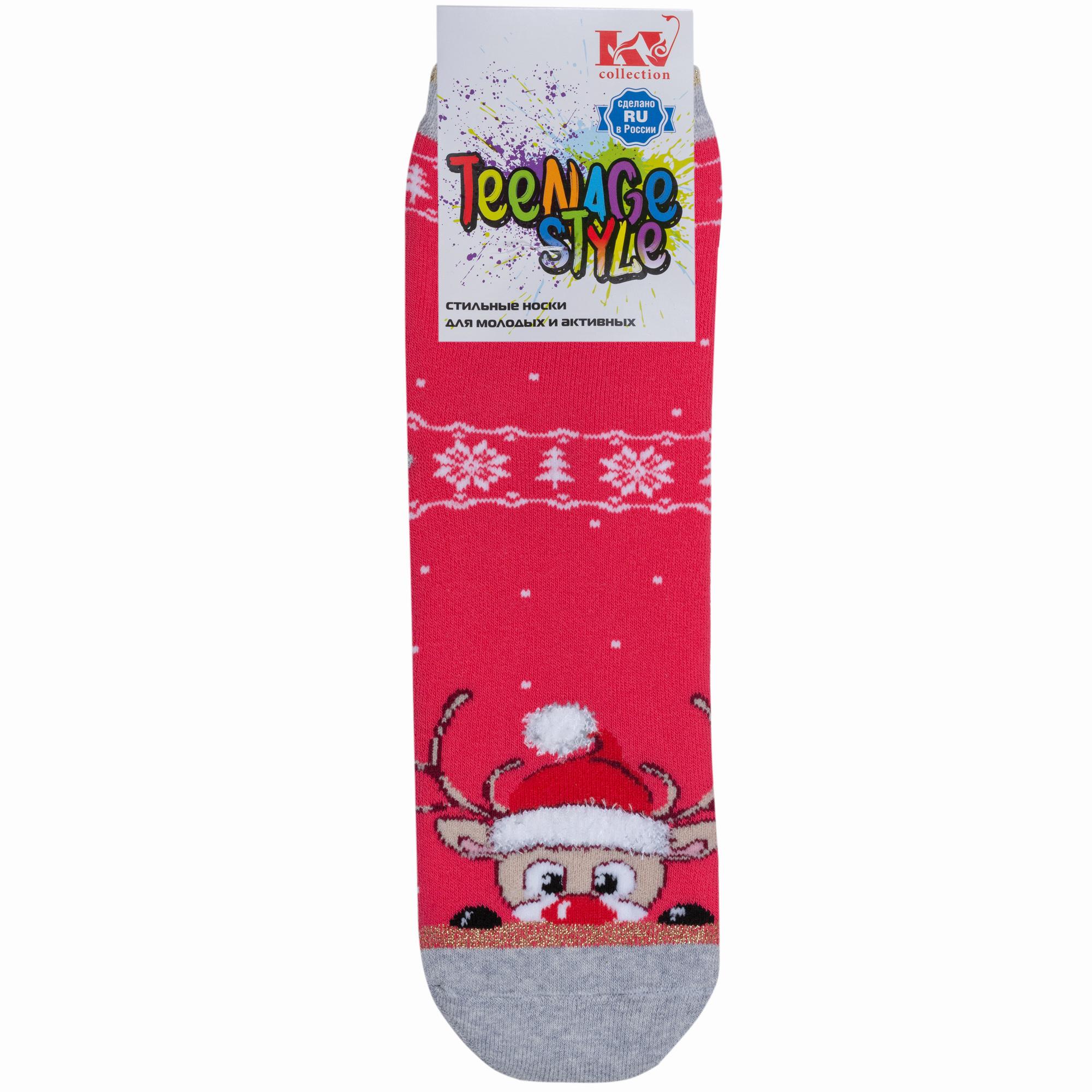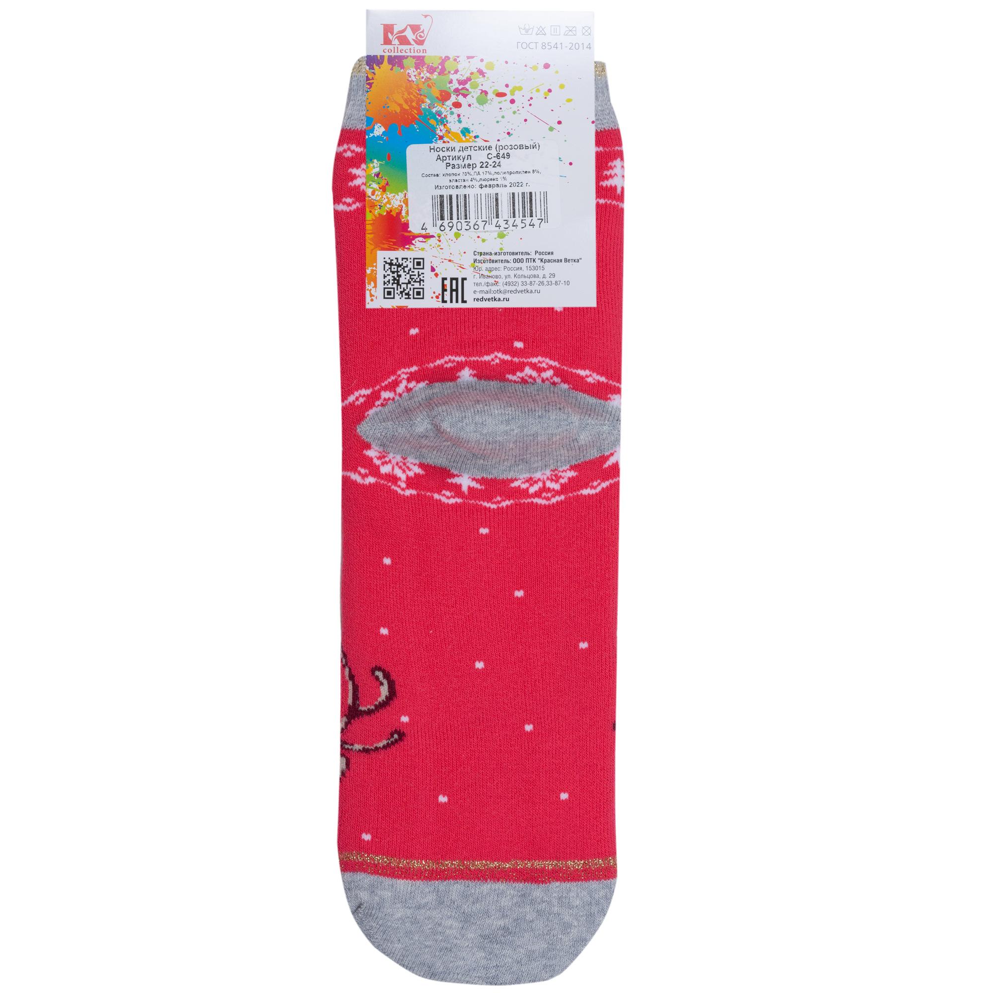 Зимние укороченные детские носки, цвет розовый, теплые, повседневные, необычные, махровые, возможно бесшовные, принт (рисунок): пушистый, новый год, животные, блеск люрекса, с узором, состав: 70% хлопок, 17% полиамид, 8% полипропилен, 4% эластан, 1% люрекс, арт. С-649. Производитель «КРАСНАЯ ВЕТКА» Россия под брендом «Красная ветка».