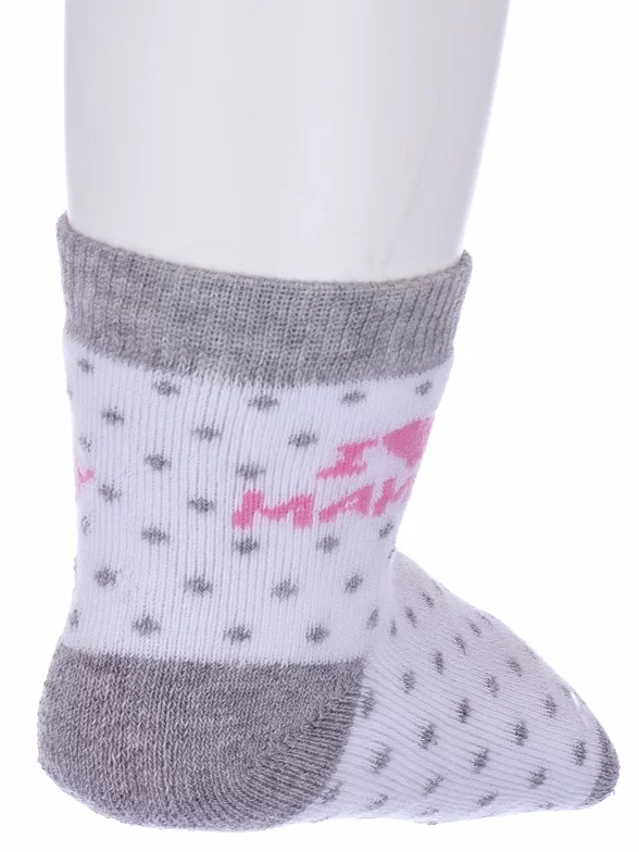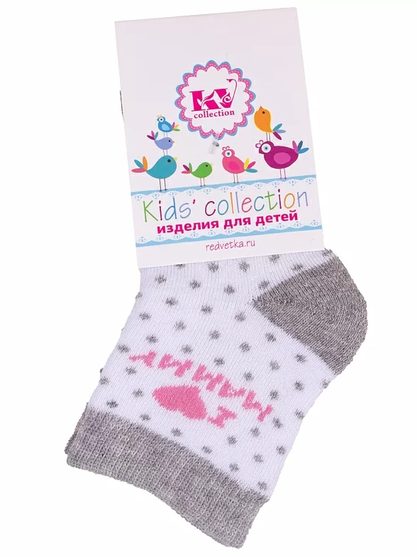 Зимние или межсезонные укороченные детские носки, цвет серый, прикольные, состав: 84% хлопок, 10% полиамид, 3% полипропилен, 3% эластан, фабричный артикул С-1609. Производитель «КРАСНАЯ ВЕТКА» Россия под брендом «Красная ветка».