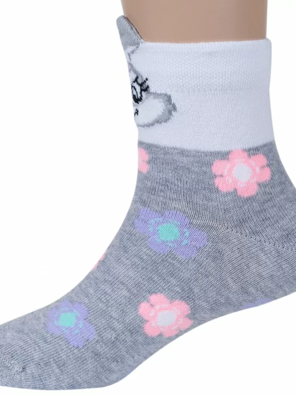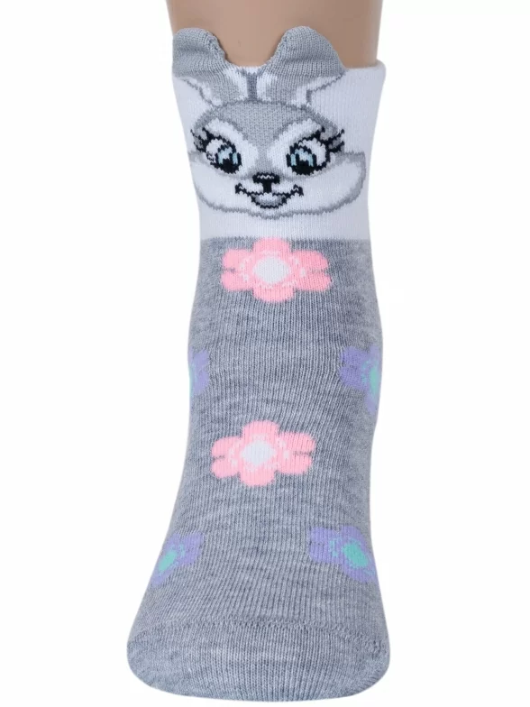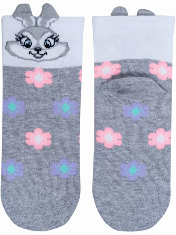 Круглогодичные укороченные детские носки, цвет серый, необычные, повседневные, возможно бесшовные, принт (рисунок): животные, с узором, состав: 57% хлопок, 21% полиамид, 18% полипропилен, 4% эластан, арт. С-1708. Производитель «КРАСНАЯ ВЕТКА» Россия под брендом «Красная ветка».