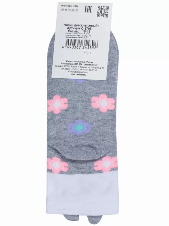 Детские носки "Красная ветка", С-1708, СЕРЫЕ