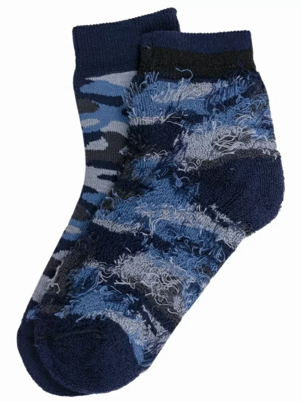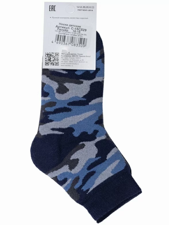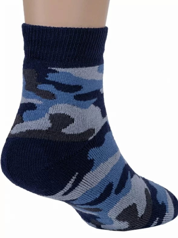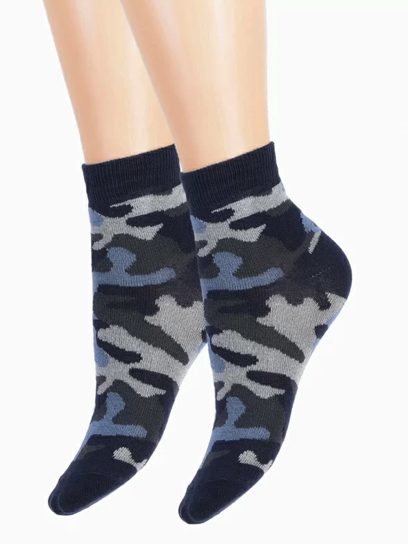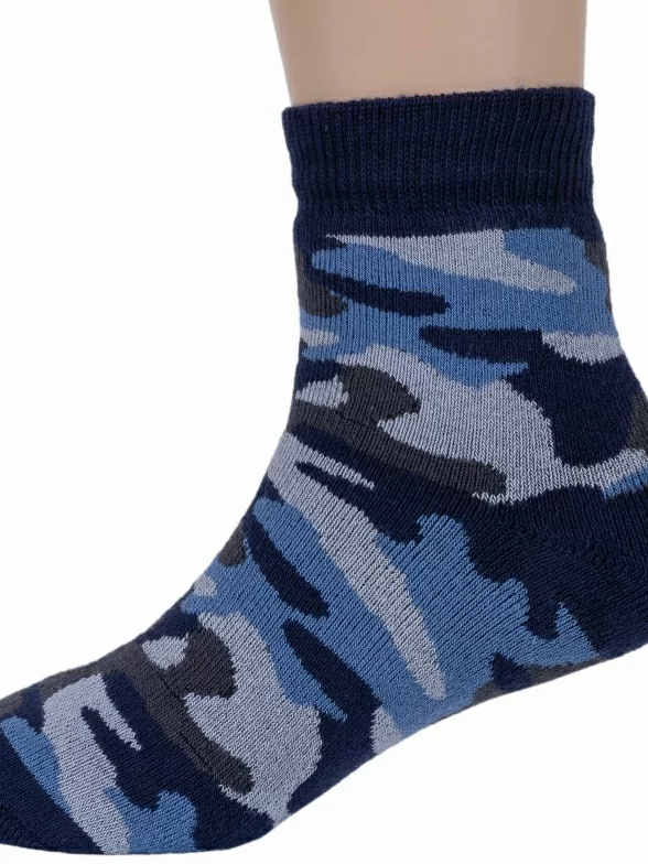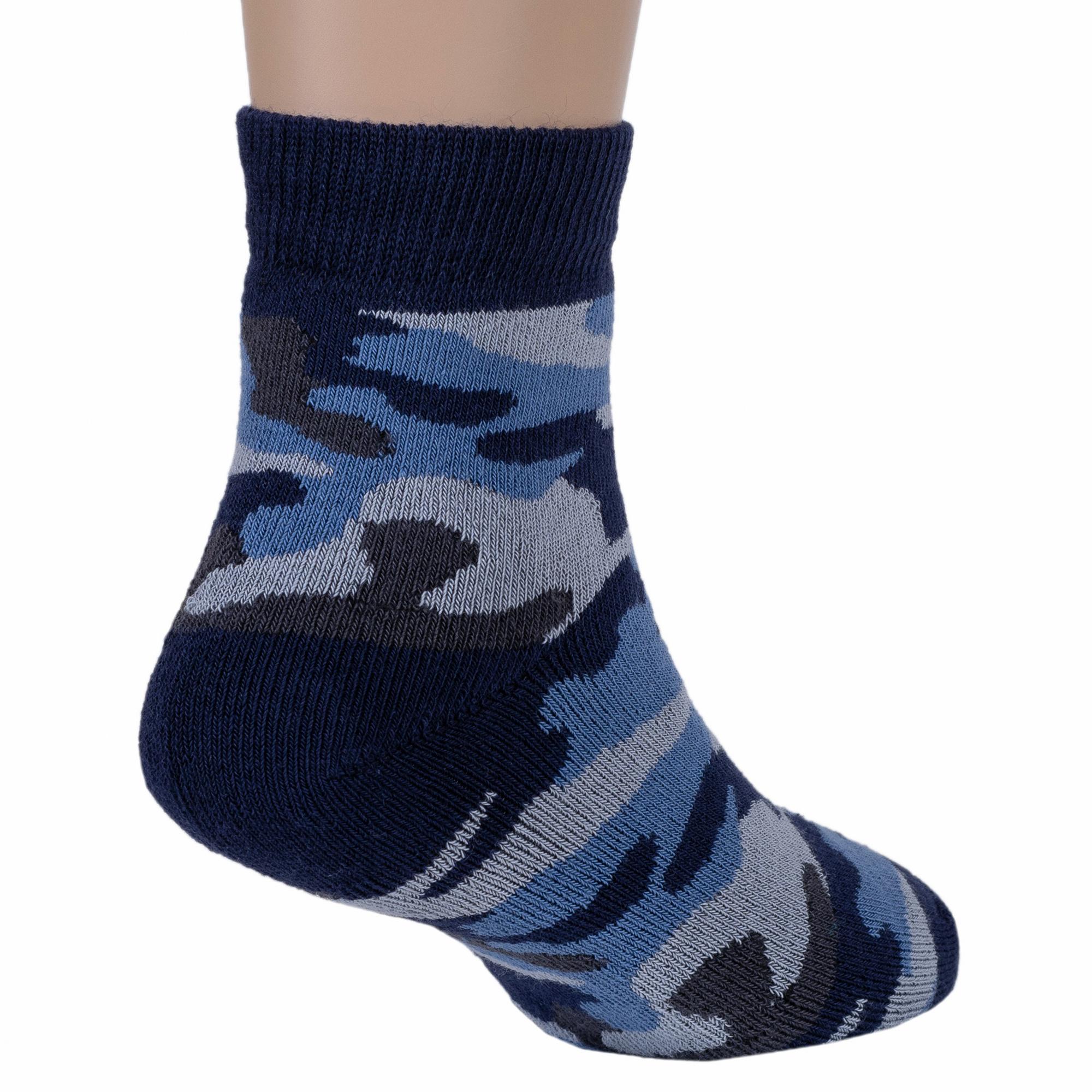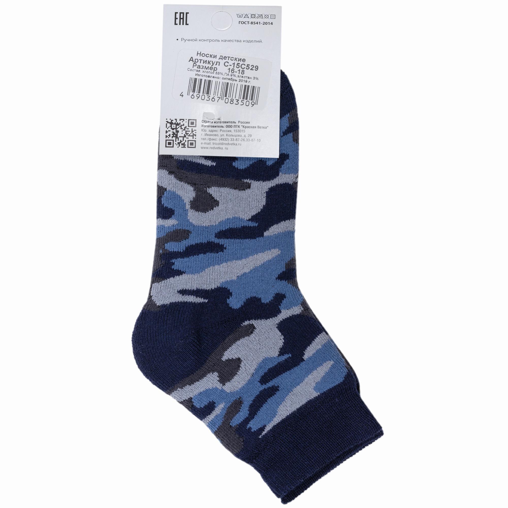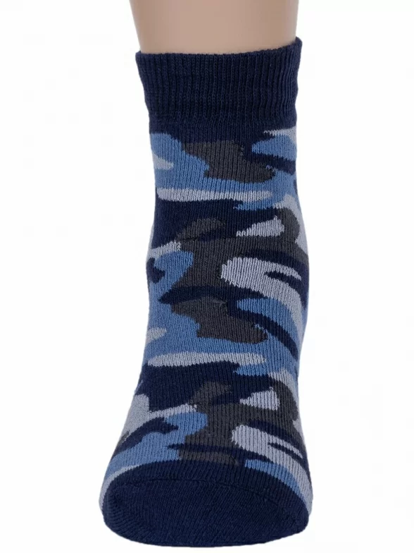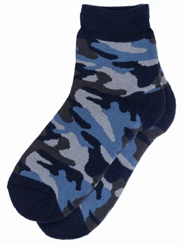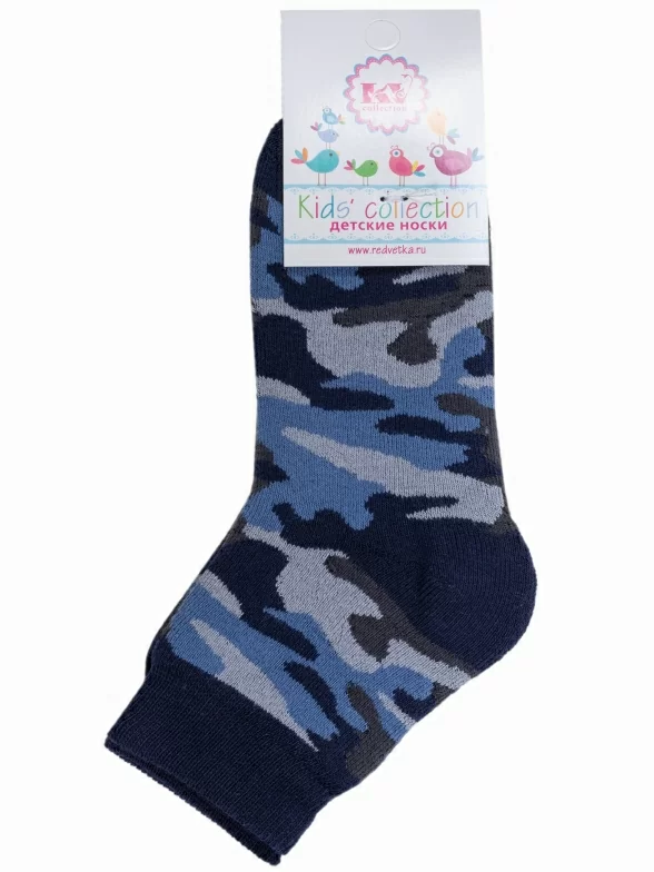 Зимние укороченные детские носки, цвет синий, повседневные, махровые, теплые, возможно бесшовные, принт (рисунок): милитари, с узором, состав: 88% хлопок, 9% полиамид, 3% эластан, арт. 15С529. Производитель «КРАСНАЯ ВЕТКА» Россия под брендом «Красная ветка».
