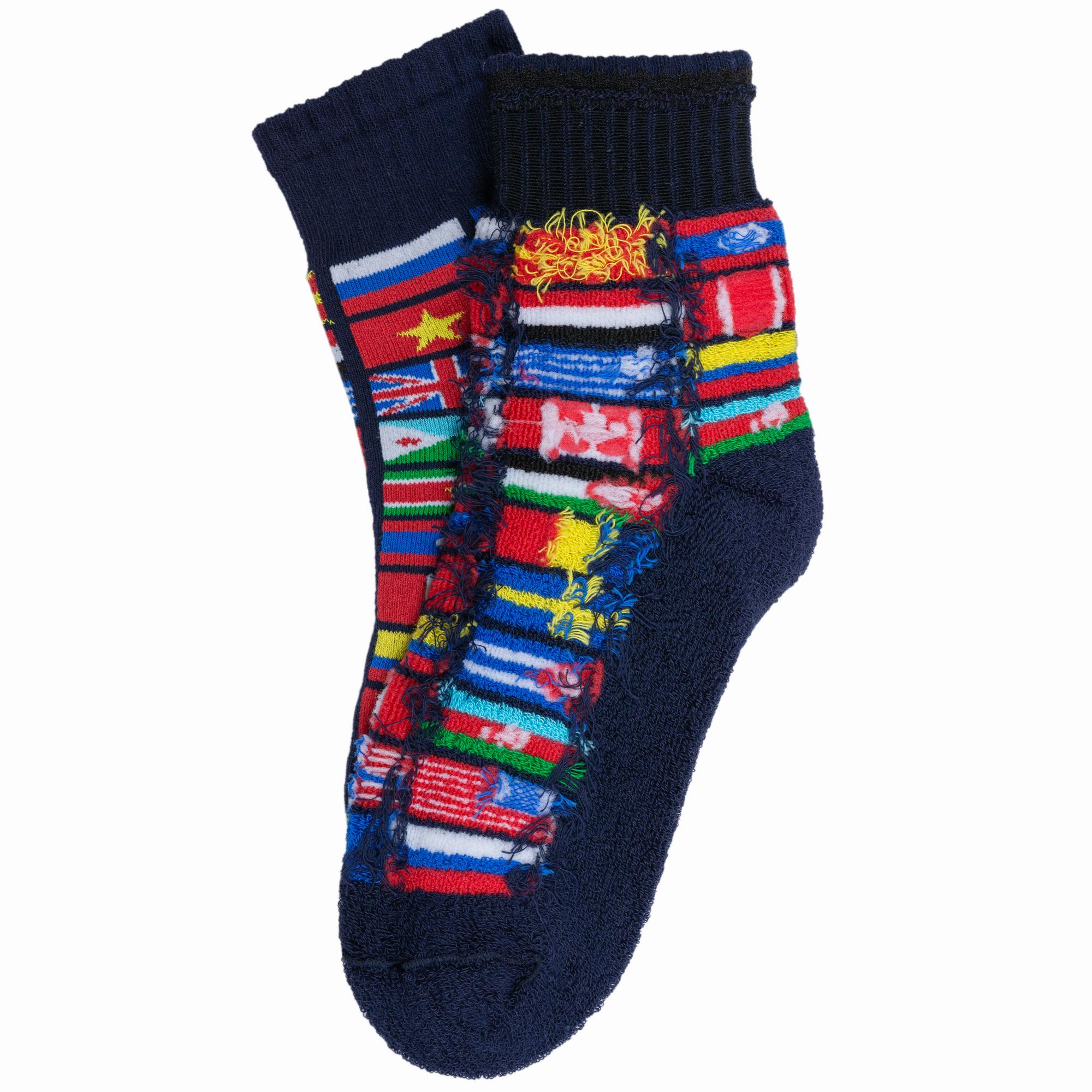 Зимние укороченные детские носки, цвет темно-синий, повседневные, махровые, теплые, возможно бесшовные, принт (рисунок): путешествия, с узором, крупные контрастные рисунки, состав: 84% хлопок, 12% полиамид, 4% эластан, арт. С-629. Производитель «КРАСНАЯ ВЕТКА» Россия под брендом «Красная ветка».