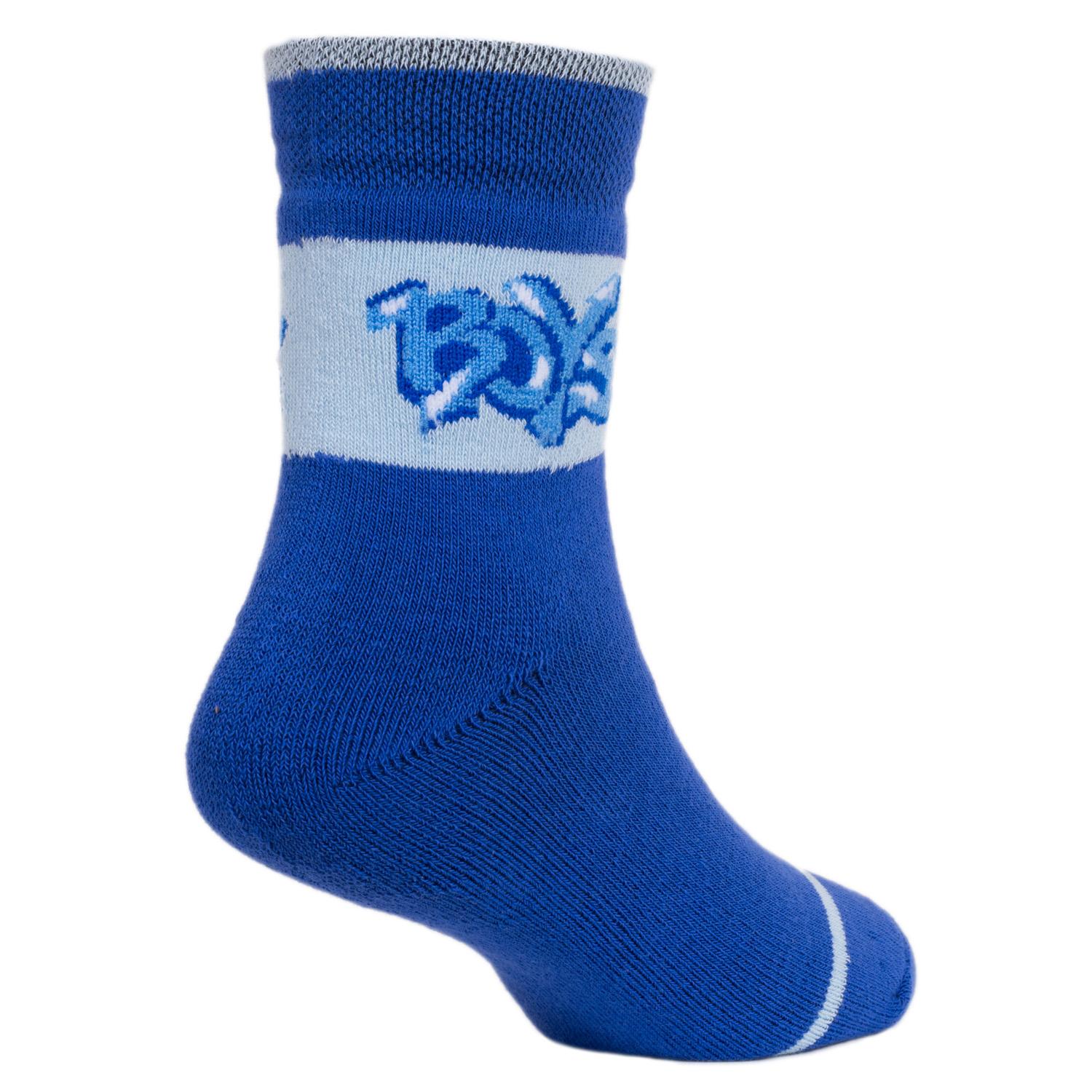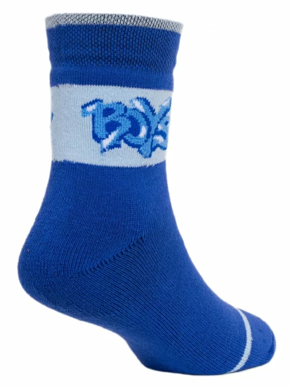 Детские махровые носки "Красная ветка". Украшены надписью в виде граффити "Boys". Связаны в России. На 86% состоят из хлопка, что позволяет коже дышать целый день. Полиамид и эластан делают изделие более плотным, износостойким и хорошо тянущимся.Модель синего цвета.