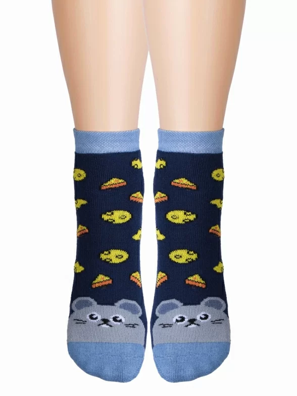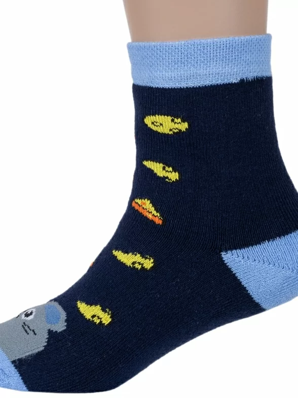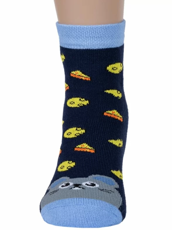 Зимние укороченные детские носки, цвет темно-синий, махровые, повседневные, теплые, возможно бесшовные, принт (рисунок): с узором, животные, состав: 72% хлопок, 12% полиамид, 12% полипропилен, 4% эластан, арт. С-653. Производитель «КРАСНАЯ ВЕТКА» Россия под брендом «Красная ветка».