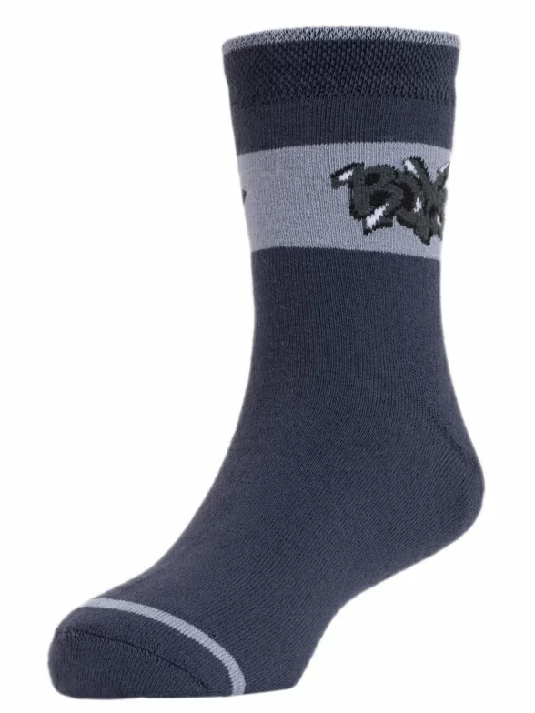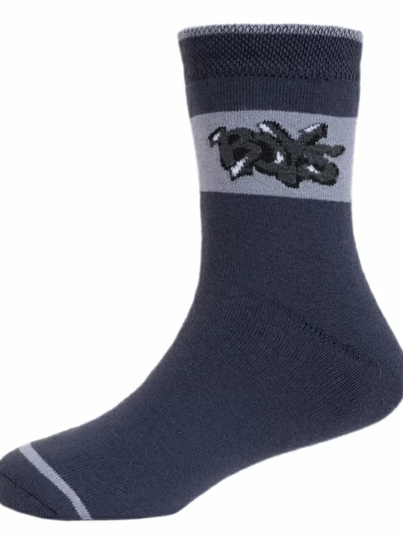 Детские махровые носки с надписью в виде граффити "Boys". Связаны на российской фабрике "Красная ветка" (Иваново). На 86% состоят из хлопка, что позволяет коже дышать целый день. Полиамид и эластан делают изделие более плотным, износостойким и хорошо тянущимся.