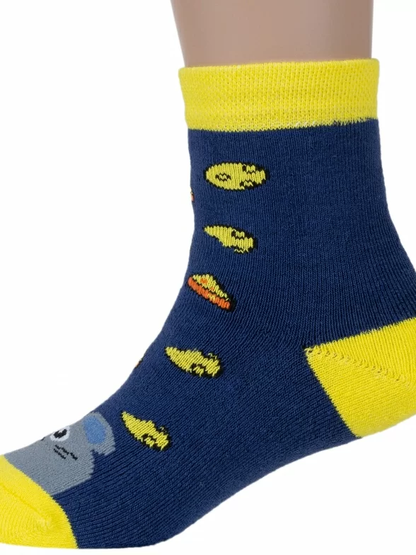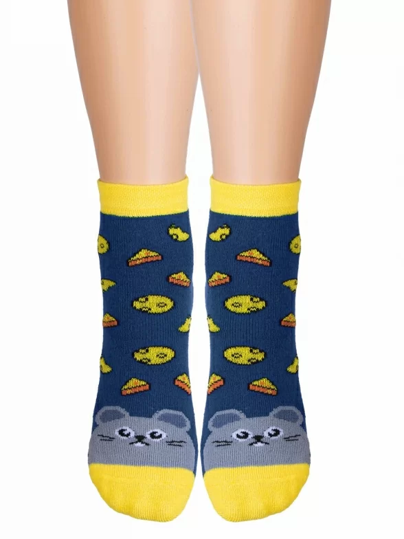 Зимние укороченные детские носки, цвет темно-синий, теплые, махровые, повседневные, возможно бесшовные, принт (рисунок): животные, с узором, состав: 72% хлопок, 12% полиамид, 12% полипропилен, 4% эластан, арт. С-653. Производитель «КРАСНАЯ ВЕТКА» Россия под брендом «Красная ветка».