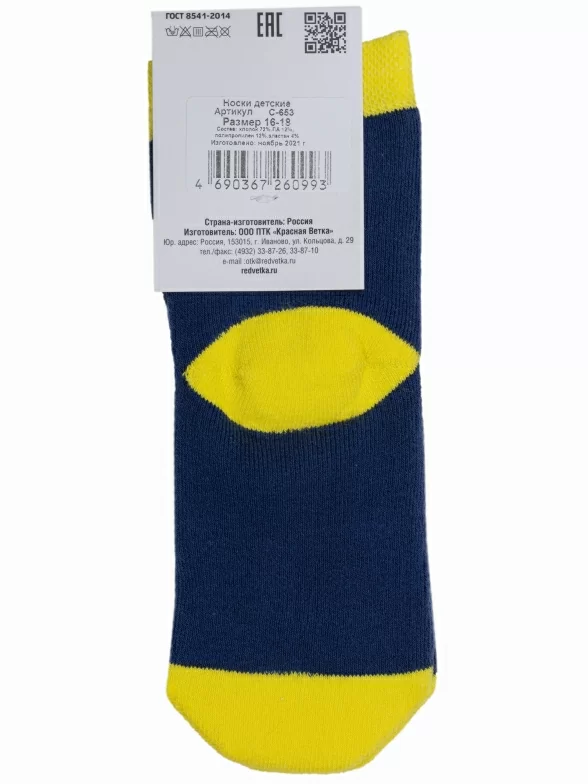 Детские махровые носки "Красная ветка", С-653, СИНИЕ с желтым