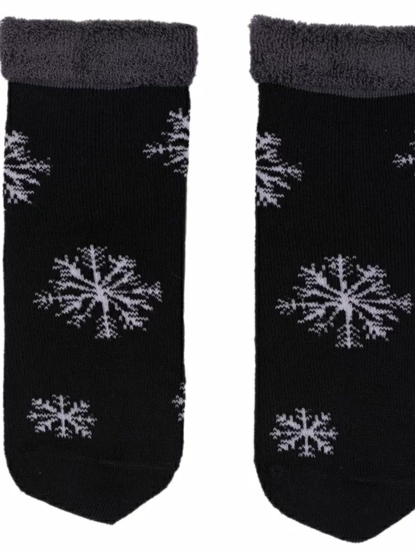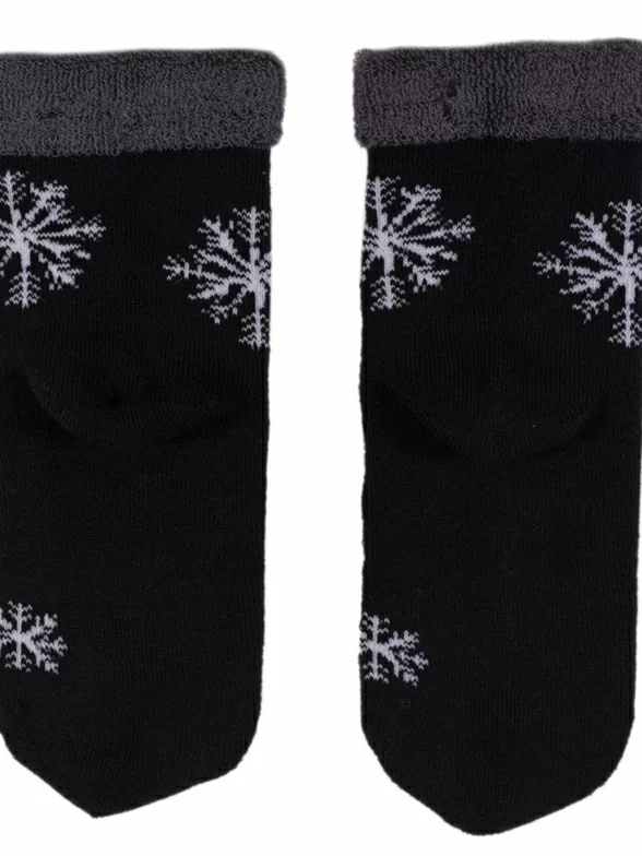 Зимние средней длины детские носки, цвет черный + белый-черный, махровые, теплые, шов обычный (не бесшовные), принт (рисунок): новый год, с узором, состав: 90% хлопок, 7% полиамид, 3% эластан (лайкра), арт. Л95. Производитель «ИП Мурзаков В.А., Ставропольский край, Россия» под брендом «Lorenzline».