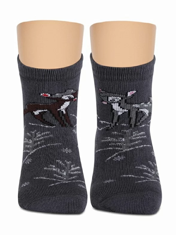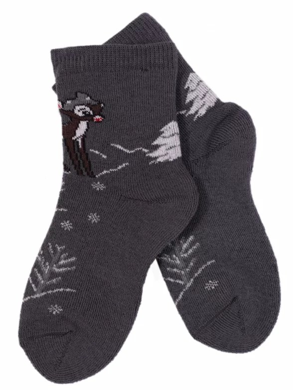 Зимние средней длины детские носки, цвет темно-серый, разного цвета, махровые, теплые, повседневные, шов обычный (не бесшовные), принт (рисунок): новый год, животные, с узором, состав: 90% хлопок, 7% полиамид, 3% эластан (лайкра), арт. Л83. Производитель «ИП Мурзаков В.А., Ставропольский край, Россия» под брендом «Lorenzline».