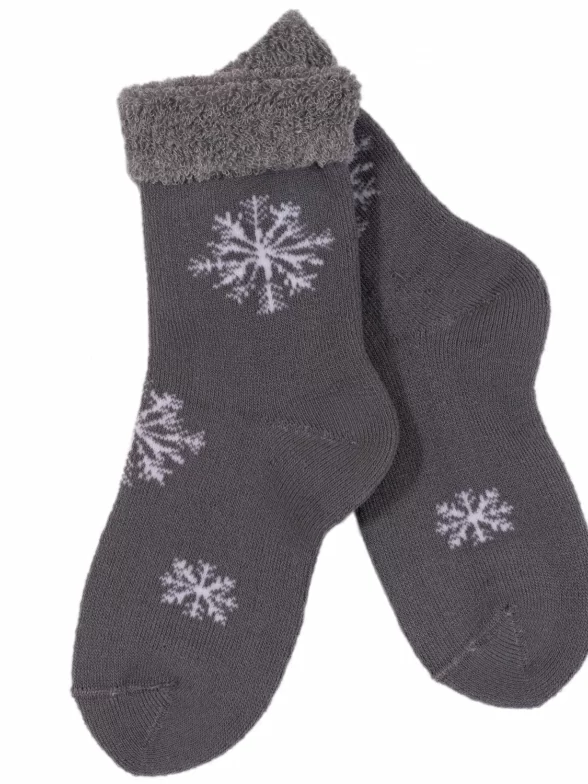 Зимние средней длины детские носки, цвет темно-серый, махровые, теплые, шов обычный (не бесшовные), принт (рисунок): новый год, с узором, состав: 90% хлопок, 7% полиамид, 3% эластан (лайкра), арт. Л95. Производитель «ИП Мурзаков В.А., Ставропольский край, Россия» под брендом «Lorenzline».