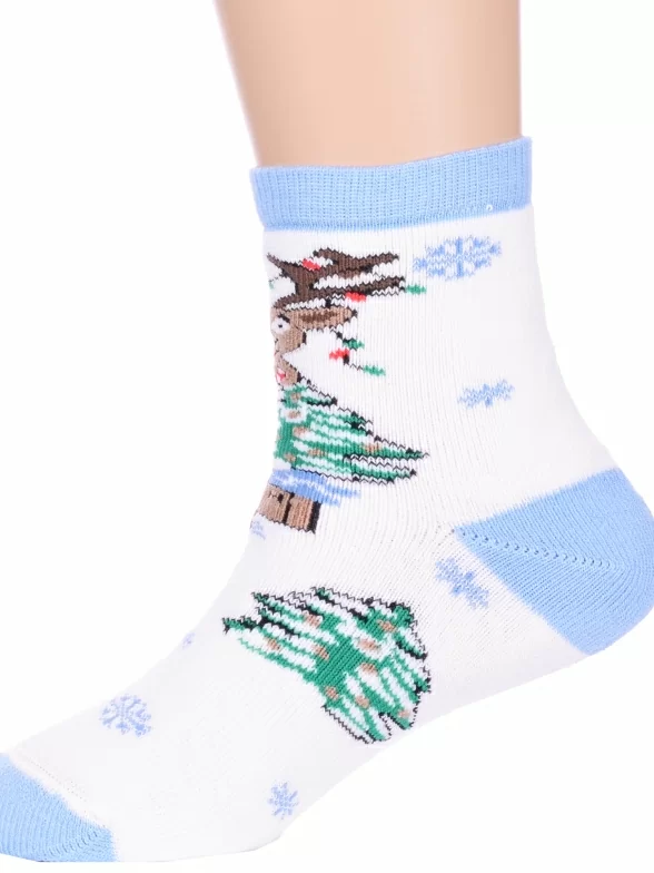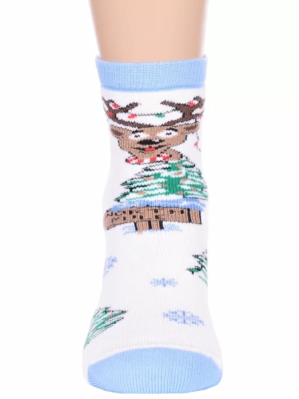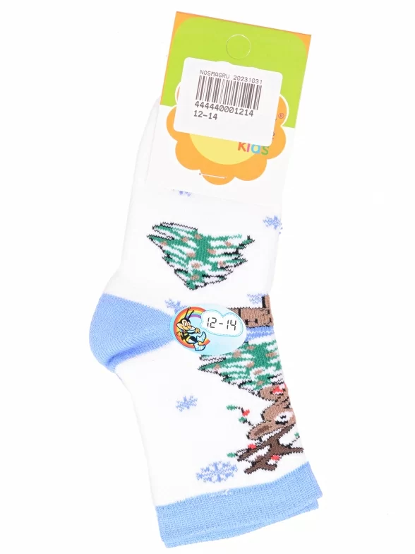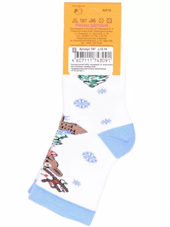 Межсезонные или зимние укороченные детские носки, цвет голубой-белый, теплые, с принтом, махровые, состав: 90% хлопок, 7% полиамид, 3% эластан (лайкра), арт. Л47. Производитель «ИП Мурзаков В.А., Ставропольский край, Россия» под брендом «Lorenzline».