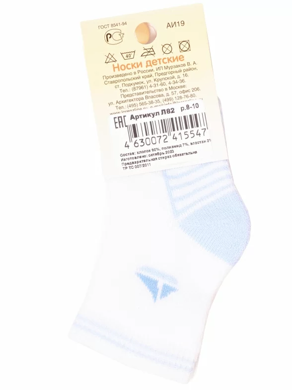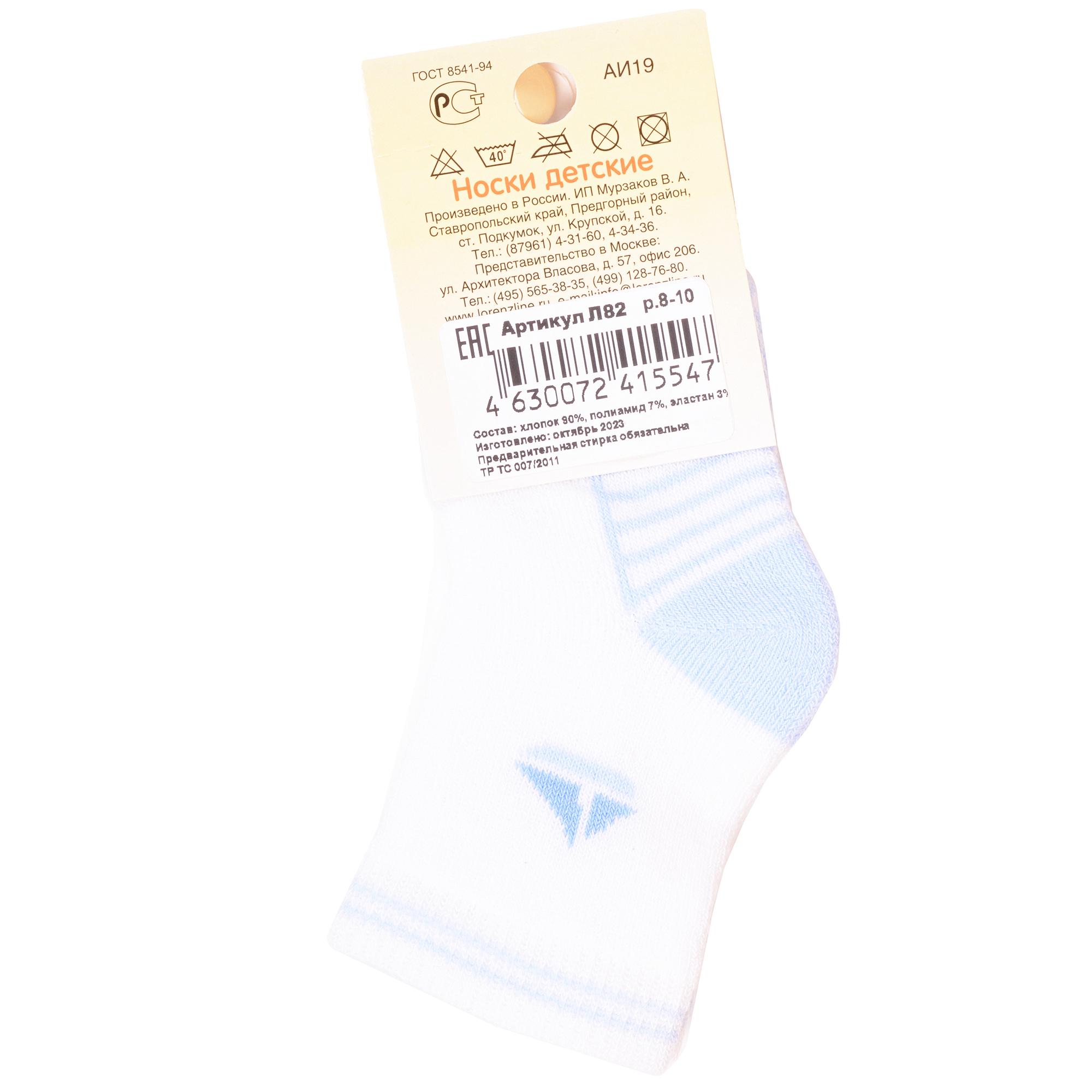 Зимние или межсезонные укороченные детские носки, цвет голубой-белый, теплые, с принтом, махровые, состав: 90% хлопок, 7% полиамид, 3% эластан (лайкра), арт. Л82. Производитель «ИП Мурзаков В.А., Ставропольский край, Россия» под брендом «Lorenzline».