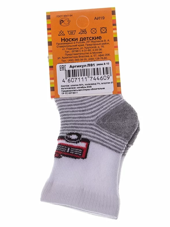 Межсезонные или зимние укороченные детские носки, цвет серый, теплые, состав: 90% хлопок, 7% полиамид, 3% эластан, арт. Л81. Производитель «ИП Мурзаков В.А., Ставропольский край, Россия» под брендом «Lorenzline».