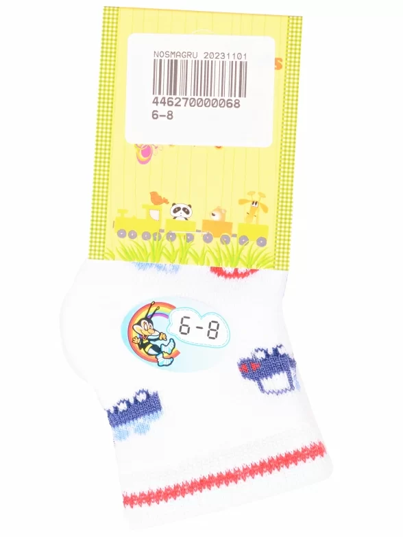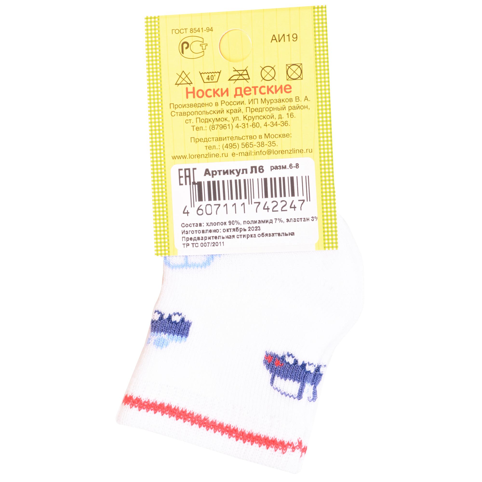 Зимние или межсезонные укороченные детские носки, цвет белый, теплые, с принтом, махровые, состав: 90% хлопок, 7% полиамид, 3% эластан (лайкра), арт. Л6. Производитель «ИП Мурзаков В.А., Ставропольский край, Россия» под брендом «Lorenzline».