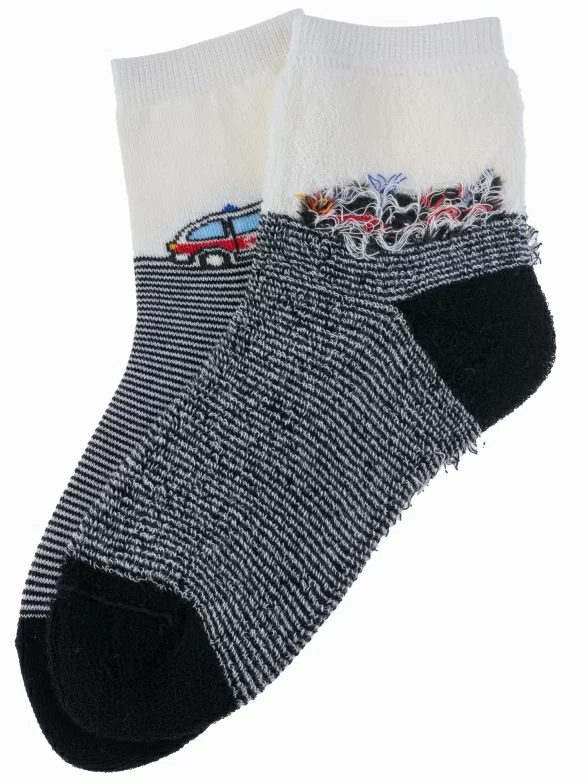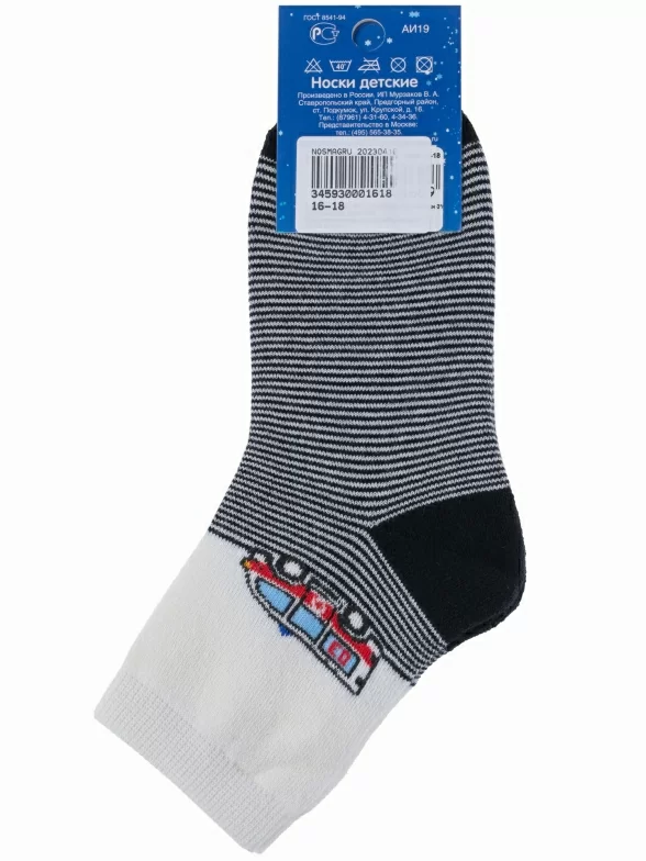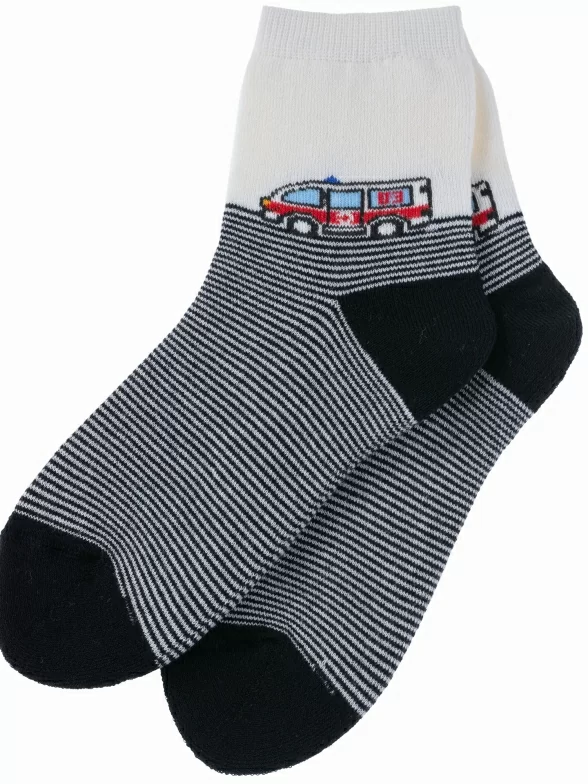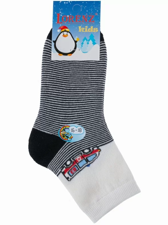 Зимние укороченные детские носки, цвет многоцветные (мультиколор), теплые, махровые, повседневные, шов обычный (не бесшовные), принт (рисунок): транспорт, с узором, состав: 90% хлопок, 7% полиамид, 3% эластан (лайкра), арт. Л81. Производитель «ИП Мурзаков В.А., Ставропольский край, Россия» под брендом «Lorenzline».