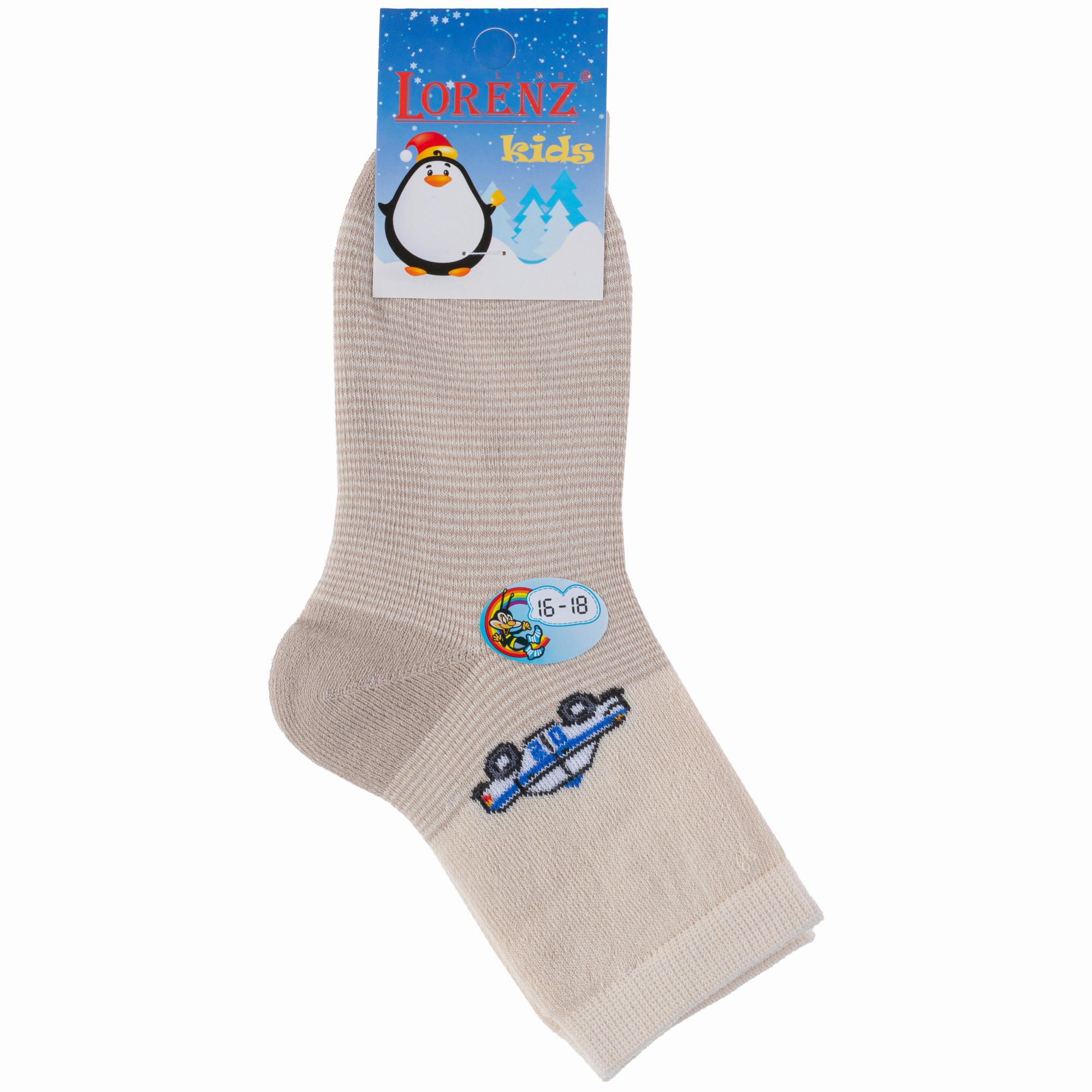Зимние укороченные детские носки, цвет бежевый, теплые, махровые, повседневные, шов обычный (не бесшовные), принт (рисунок): транспорт, с узором, состав: 90% хлопок, 7% полиамид, 3% эластан (лайкра), арт. Л81. Производитель «ИП Мурзаков В.А., Ставропольский край, Россия» под брендом «Lorenzline».