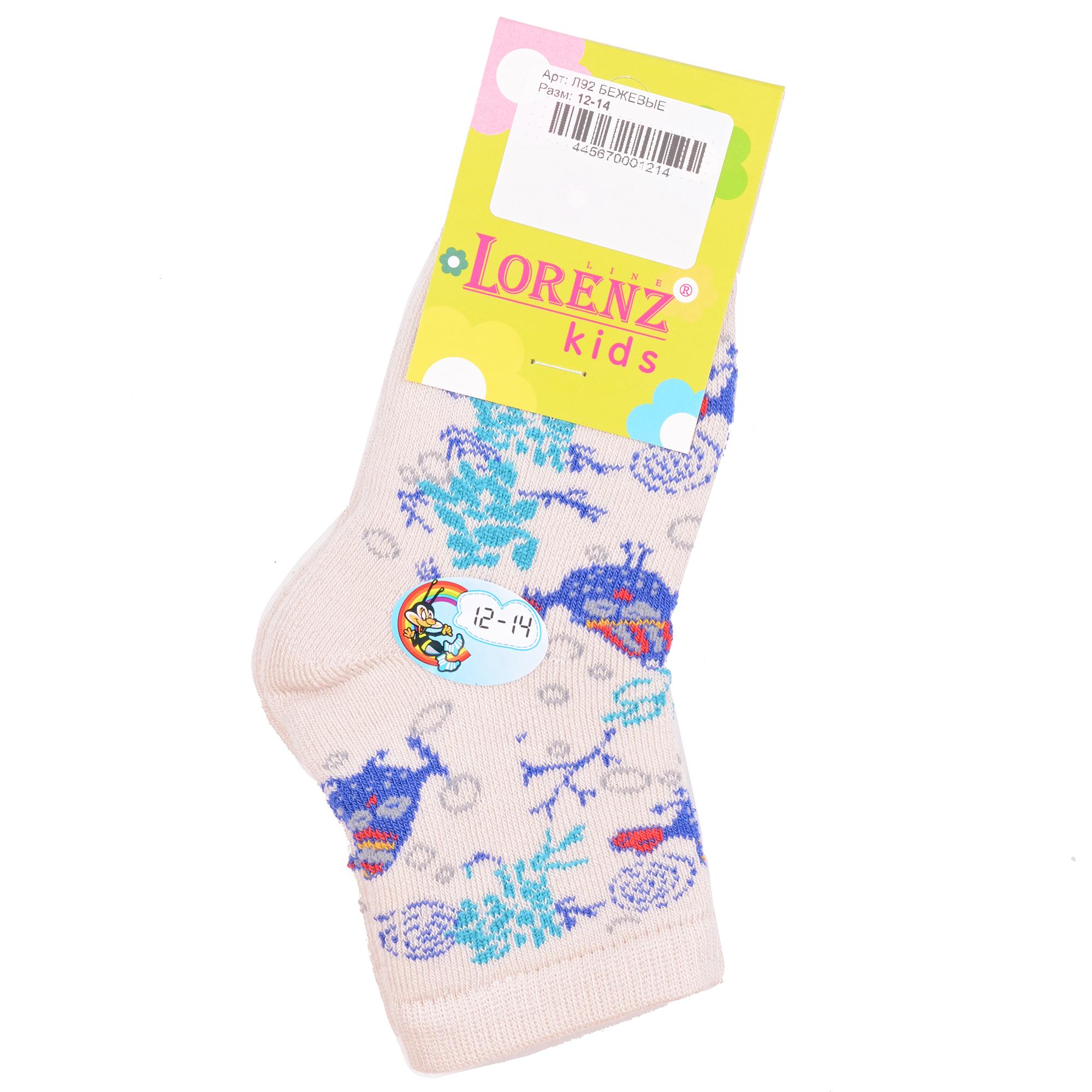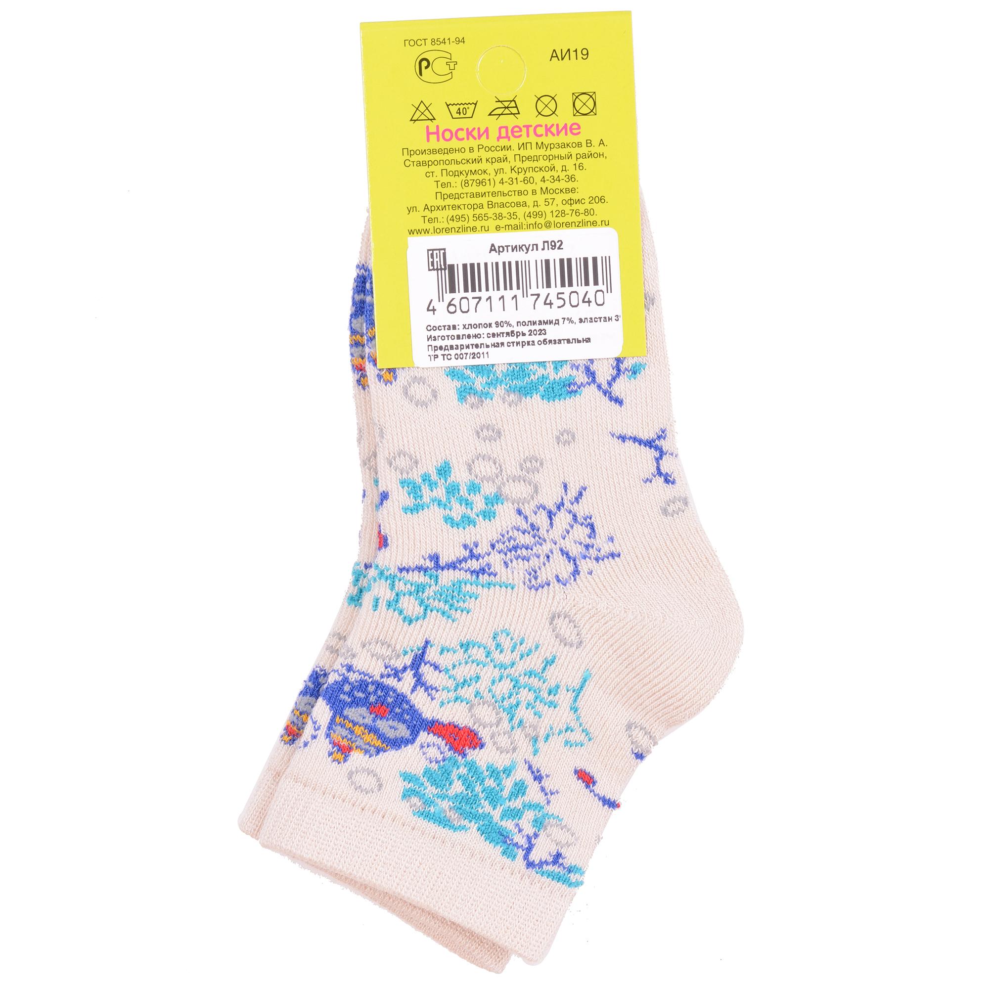 Межсезонные или зимние укороченные детские носки, цвет бежевый, с принтом, махровые, теплые, состав: 90% хлопок, 7% полиамид, 3% эластан (лайкра), арт. Л92. Производитель «ИП Мурзаков В.А., Ставропольский край, Россия» под брендом «Lorenzline».