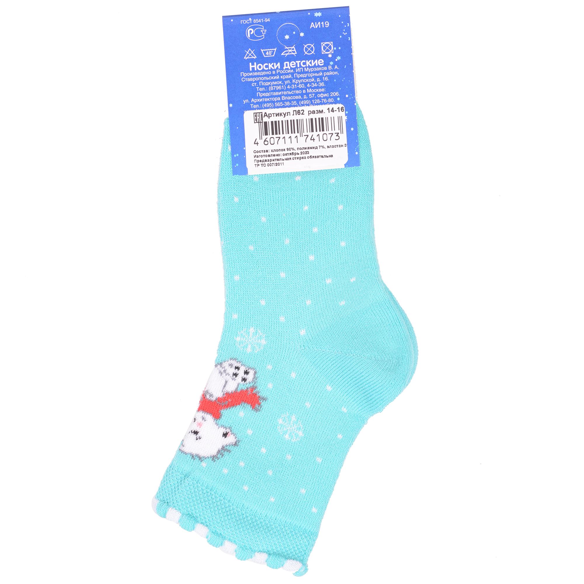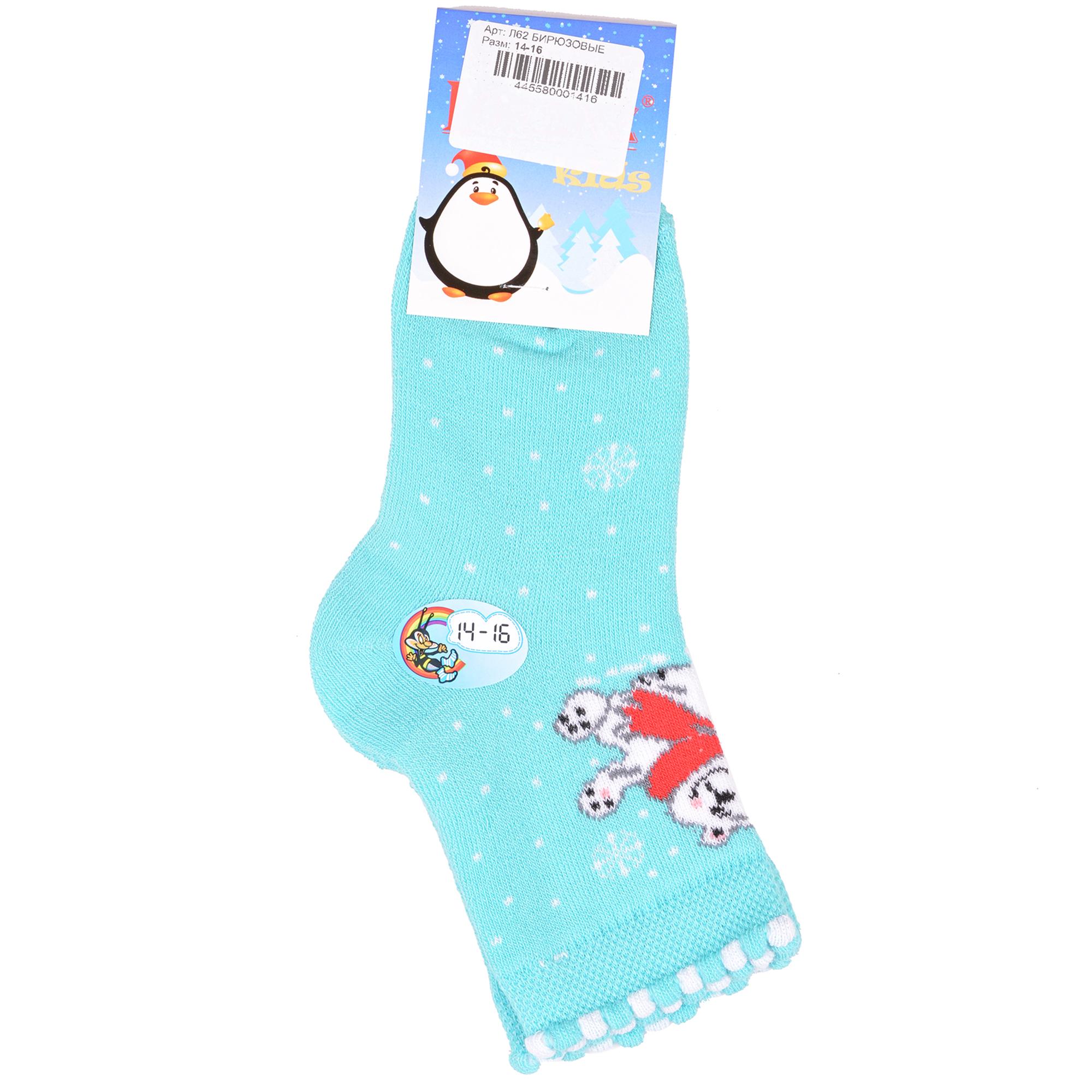 Зимние или межсезонные укороченные детские носки, цвет бирюзовый, теплые, с принтом, махровые, состав: 90% хлопок, 7% полиамид, 3% эластан (лайкра), арт. Л62. Производитель «ИП Мурзаков В.А., Ставропольский край, Россия» под брендом «Lorenzline».