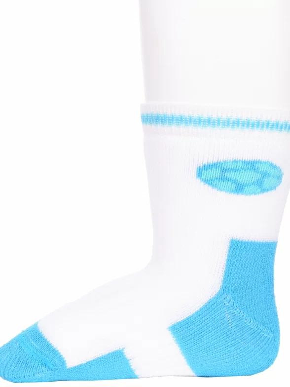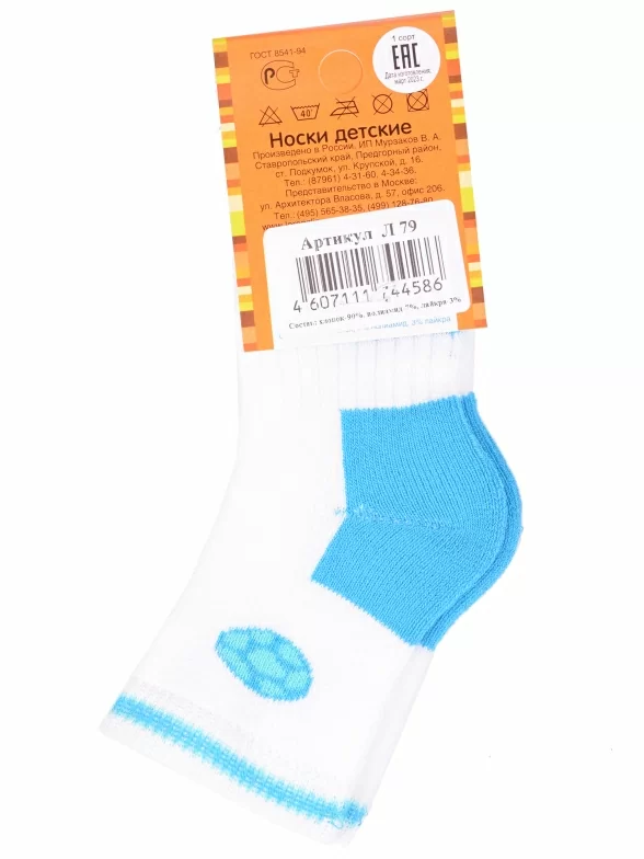 Зимние или межсезонные укороченные детские носки, цвет бирюзовый-белый, теплые, с принтом, махровые, состав: 90% хлопок, 7% полиамид, 3% эластан (лайкра), арт. Л79. Производитель «ИП Мурзаков В.А., Ставропольский край, Россия» под брендом «Lorenzline».
