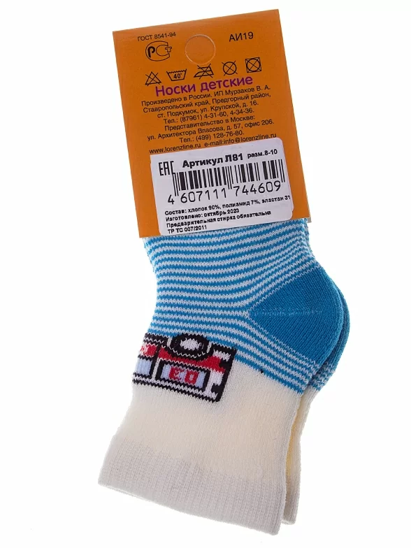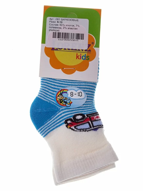Межсезонные или зимние укороченные детские носки, цвет бирюзовый, теплые, состав: 90% хлопок, 7% полиамид, 3% эластан, арт. Л81. Производитель «ИП Мурзаков В.А., Ставропольский край, Россия» под брендом «Lorenzline».
