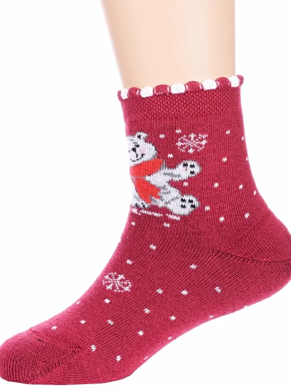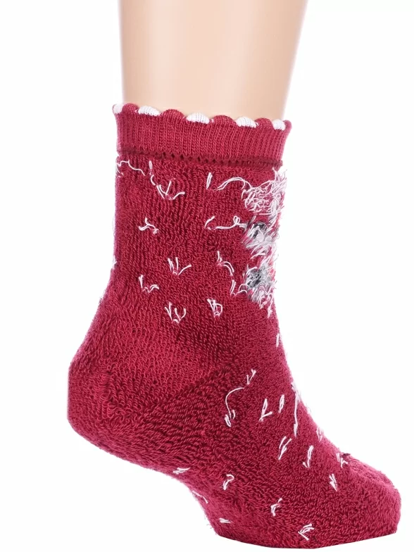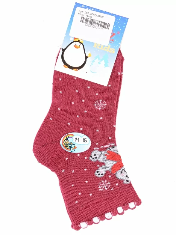 Зимние или межсезонные укороченные детские носки, цвет бордовый, махровые, теплые, с принтом, состав: 90% хлопок, 7% полиамид, 3% эластан (лайкра), арт. Л62. Производитель «ИП Мурзаков В.А., Ставропольский край, Россия» под брендом «Lorenzline».