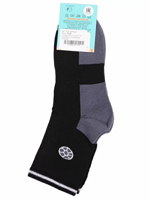Зимние укороченные детские носки, цвет черный, теплые, спортивные, повседневные, махровые, шов обычный (не бесшовные), принт (рисунок): спортивные, игры, с узором, состав: 90% хлопок, 7% полиамид, 3% эластан (лайкра), арт. Л79. Производитель «ИП Мурзаков В.А., Ставропольский край, Россия» под брендом «Lorenzline».