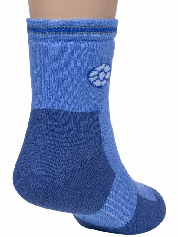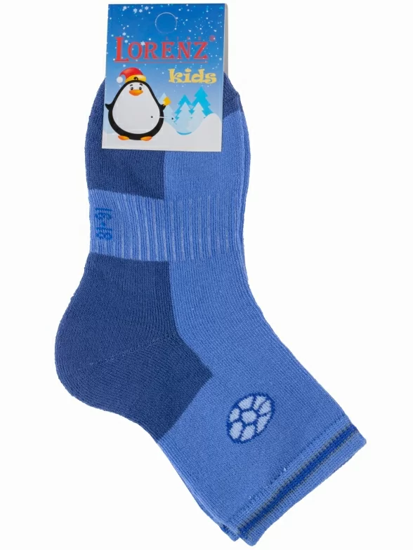Зимние укороченные детские носки, цвет джинс, теплые, спортивные, повседневные, махровые, шов обычный (не бесшовные), принт (рисунок): спортивные, игры, с узором, состав: 90% хлопок, 7% полиамид, 3% эластан (лайкра), арт. Л79. Производитель «ИП Мурзаков В.А., Ставропольский край, Россия» под брендом «Lorenzline».