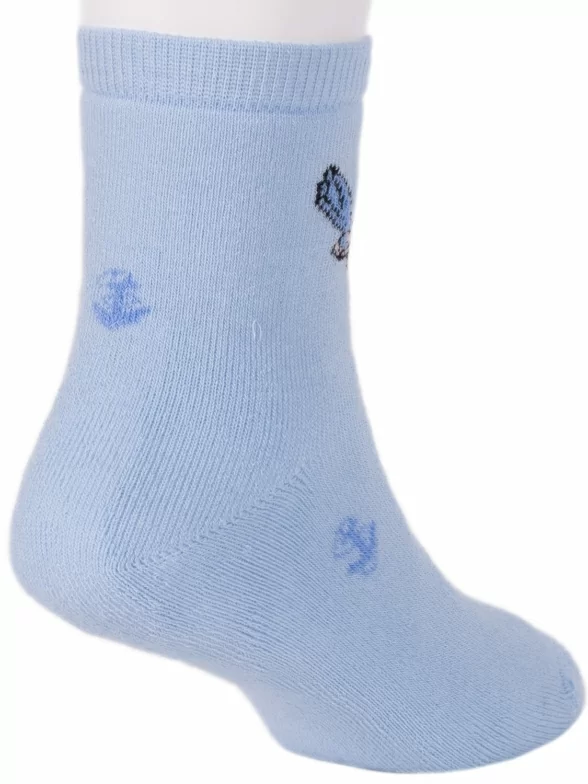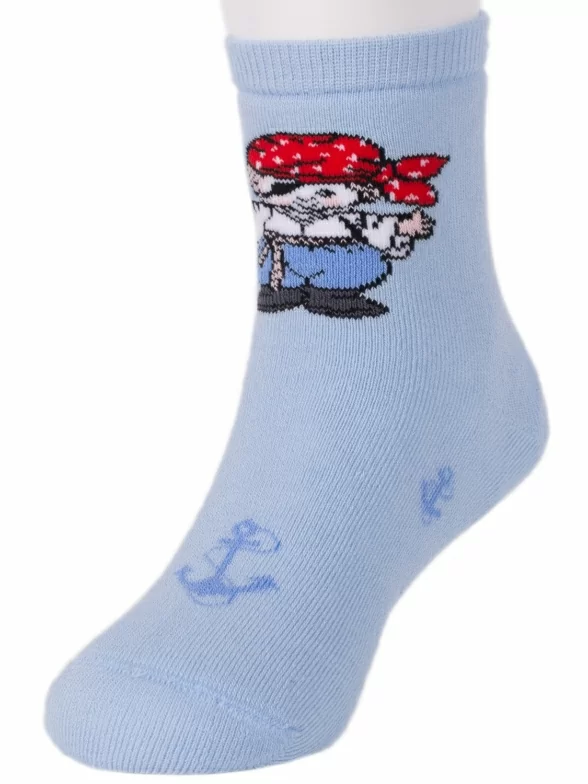 Красивые детские носочки LORENZLine. Модель состоят на 90% из хлопка, что делает носки максимально удобными, воздухопроницаемыми и мягкими. Особенность модели - приятный голубой цвет и рисунок с юным пиратом.