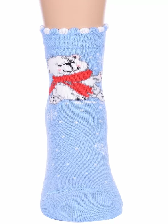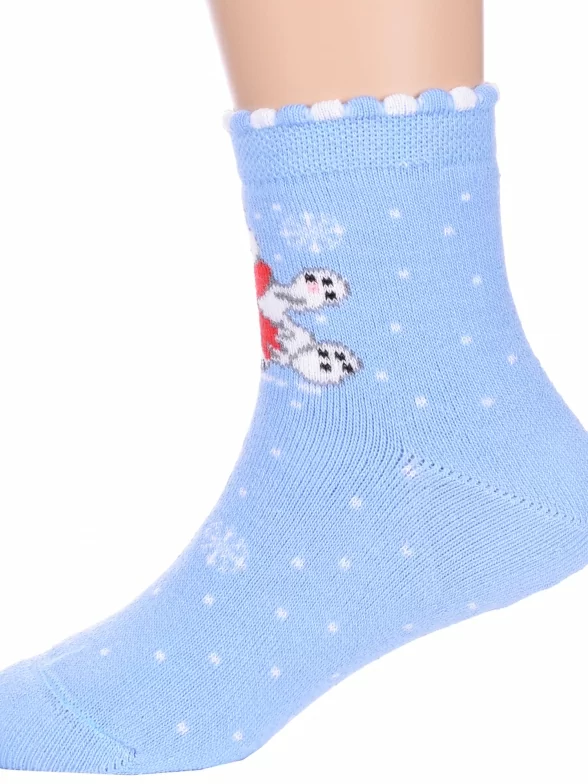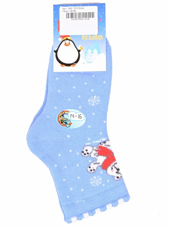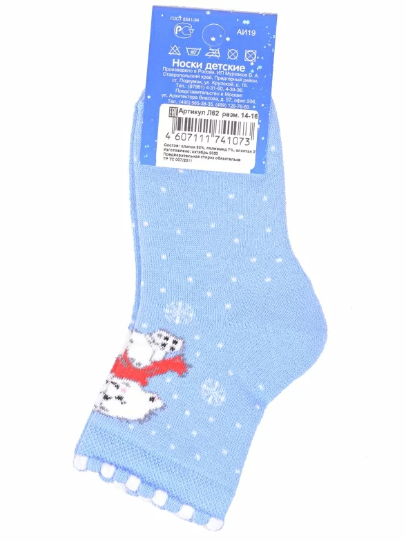 Межсезонные или зимние укороченные детские носки, цвет голубой, с принтом, махровые, теплые, состав: 90% хлопок, 7% полиамид, 3% эластан (лайкра), арт. Л62. Производитель «ИП Мурзаков В.А., Ставропольский край, Россия» под брендом «Lorenzline».