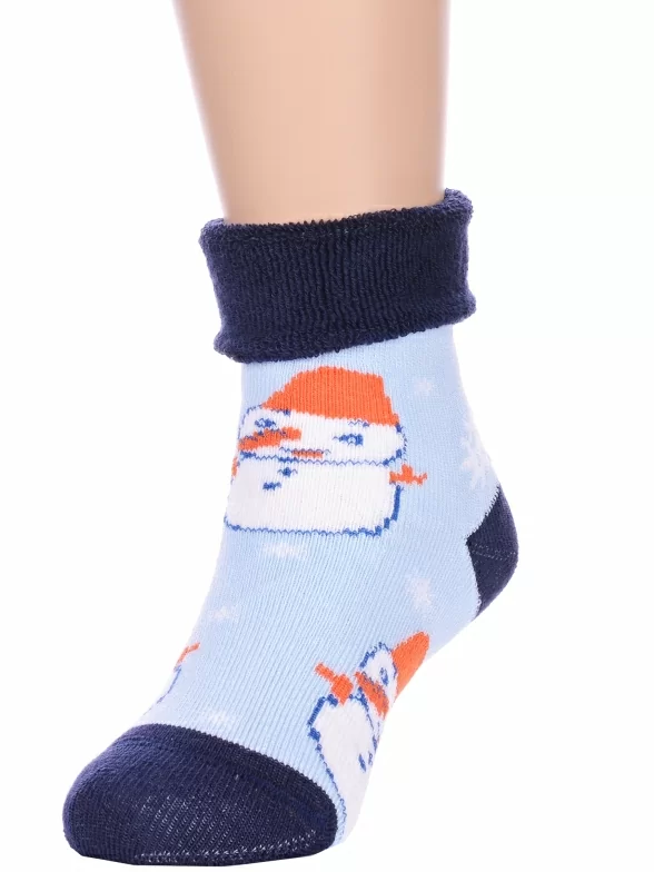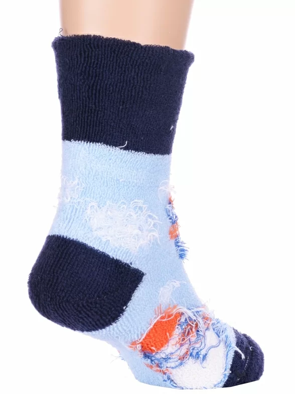 Межсезонные или зимние укороченные детские носки, цвет темно-синий, с отворотом, теплые, с принтом, махровые, состав: 90% хлопок, 7% полиамид, 3% эластан (лайкра), арт. Л14. Производитель «ИП Мурзаков В.А., Ставропольский край, Россия» под брендом «Lorenzline».
