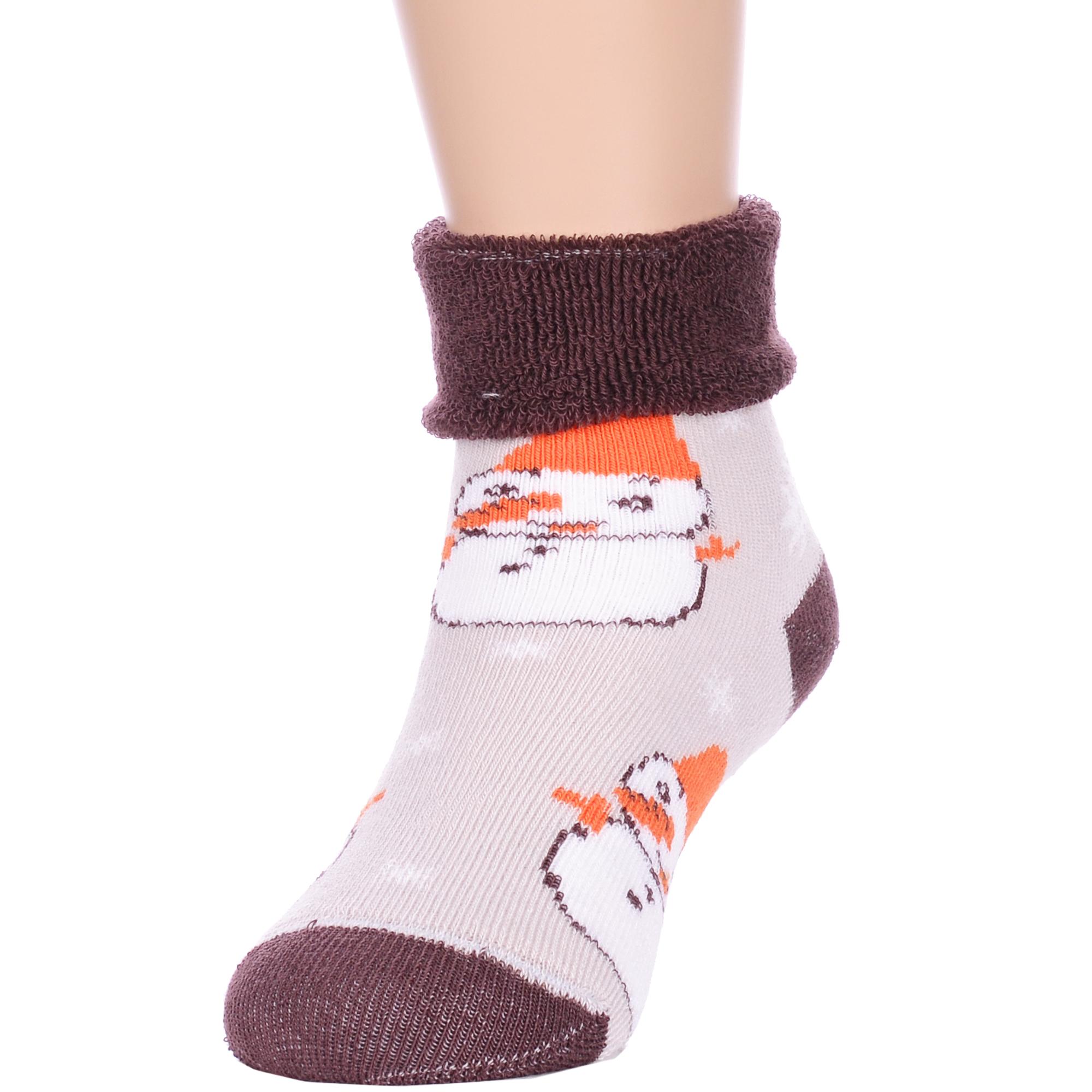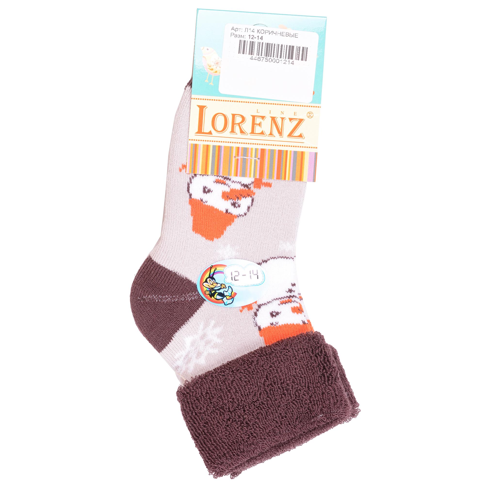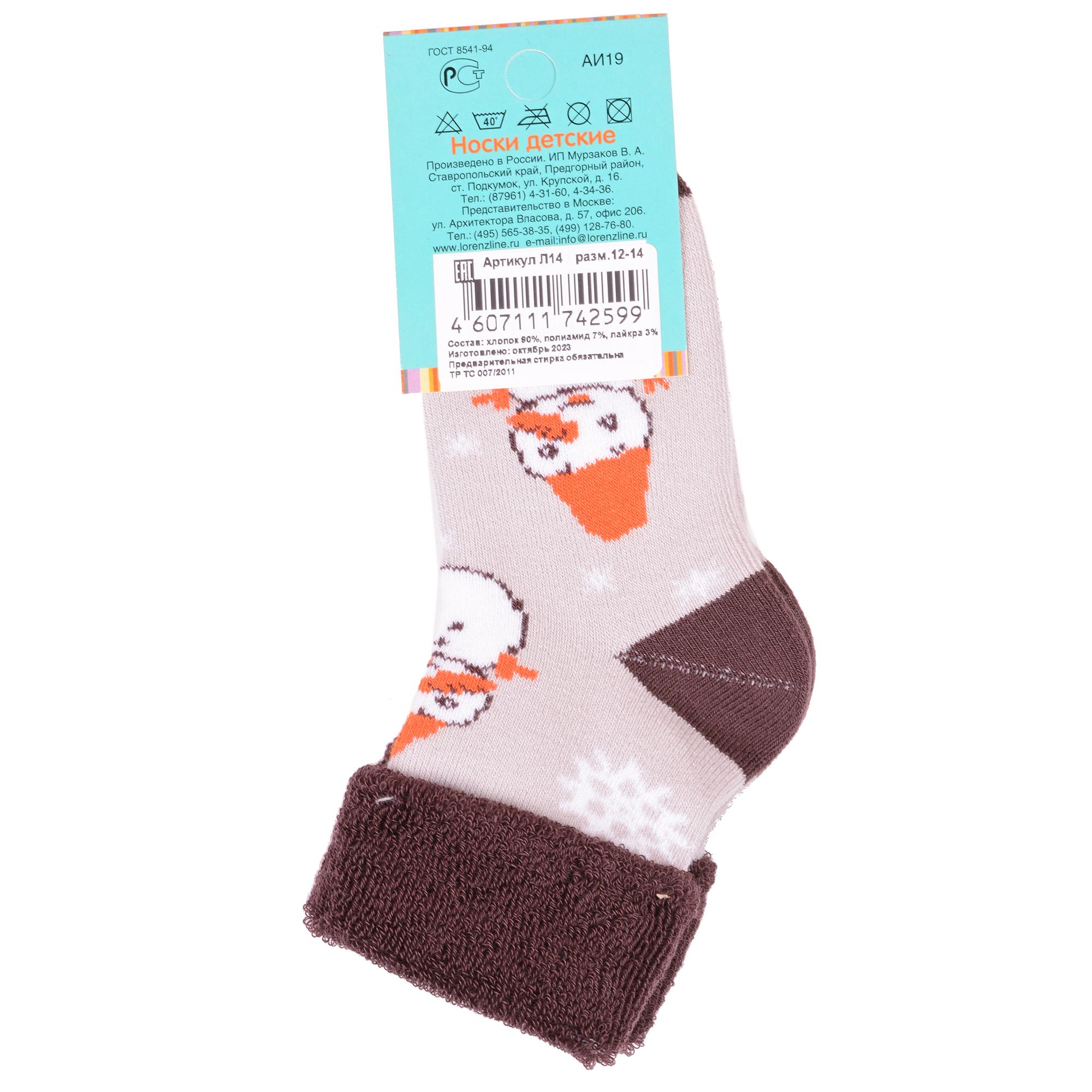 Зимние или межсезонные укороченные детские носки, цвет коричневый-бежевый, махровые, с отворотом, теплые, с принтом, состав: 90% хлопок, 7% полиамид, 3% эластан (лайкра), арт. Л14. Производитель «ИП Мурзаков В.А., Ставропольский край, Россия» под брендом «Lorenzline».