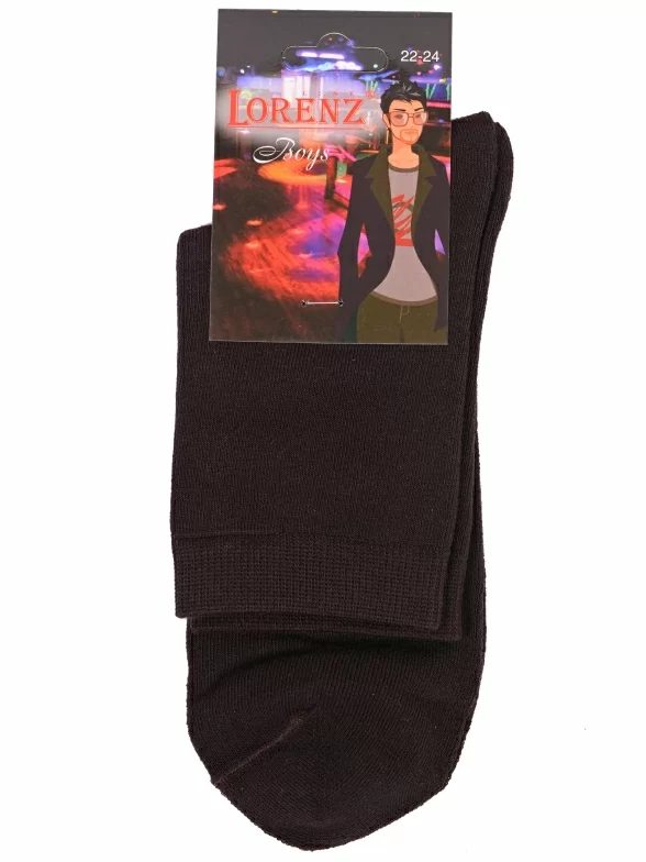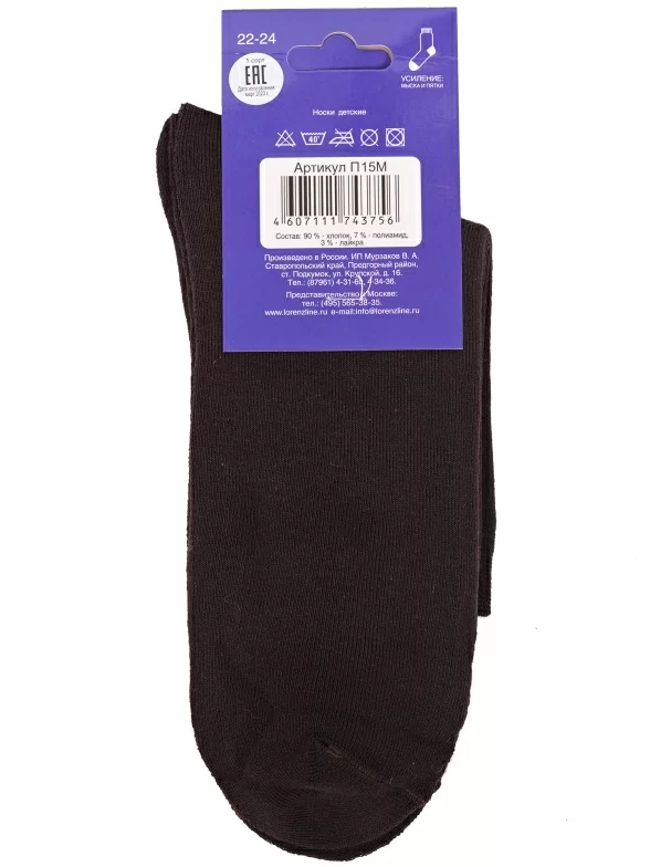 Межсезонные или зимние укороченные детские носки, цвет коричневый, теплые, махровые, классические, возможно бесшовные, принт (рисунок): однотонный, без рисунков/узоров, состав: 90% хлопок, 7% полиамид, 3% лайкра, арт. П15М. Производитель «ИП Мурзаков В.А., Ставропольский край, Россия» под брендом «Lorenzline».
