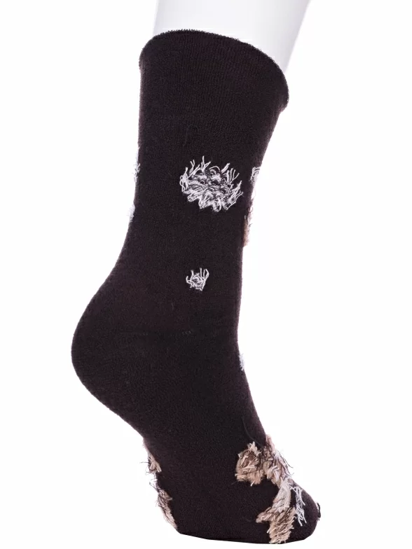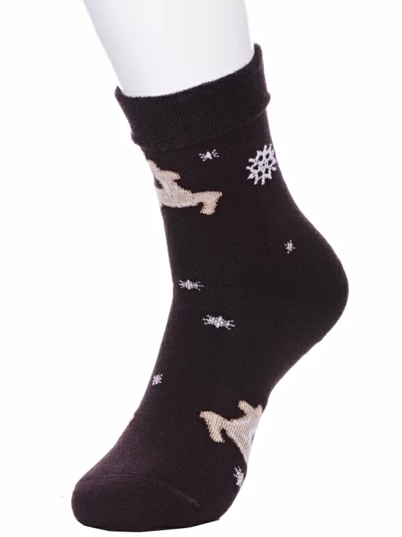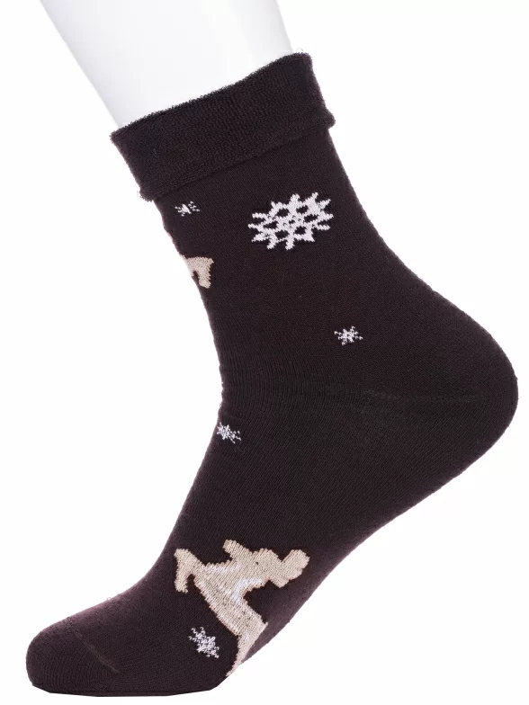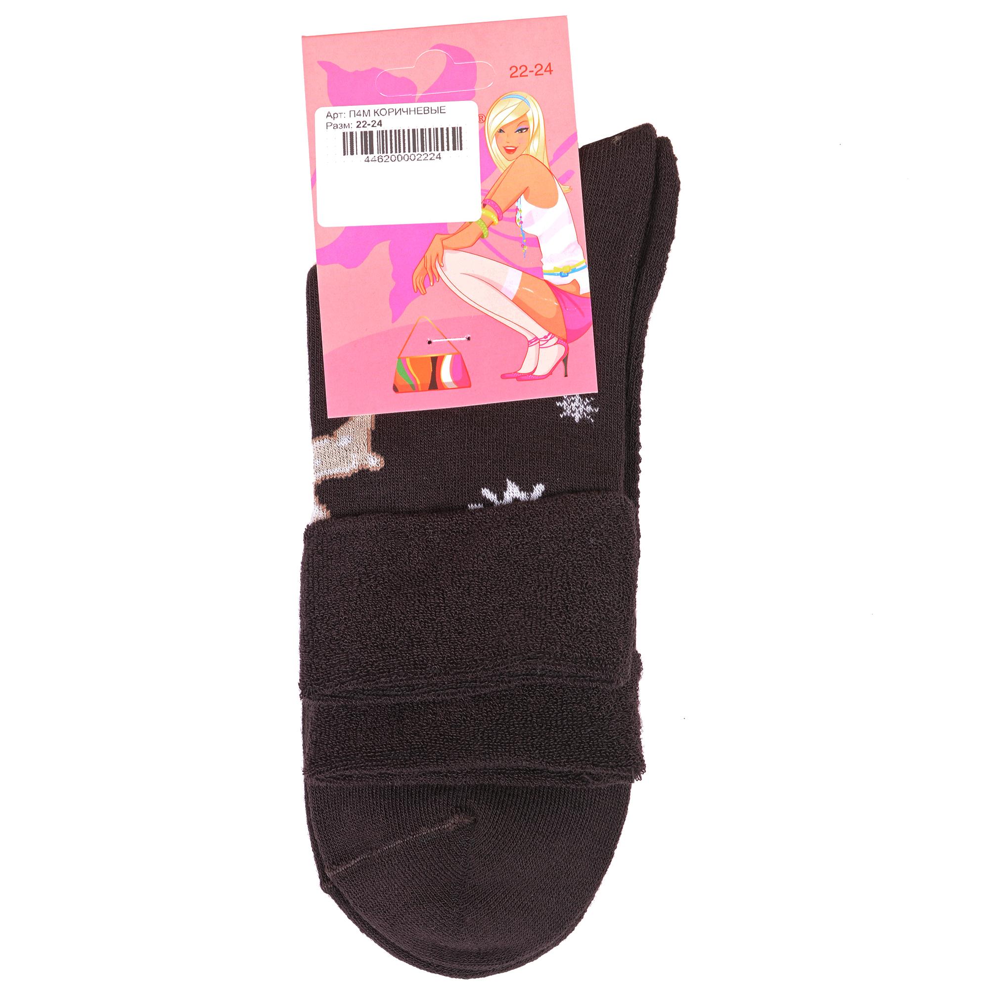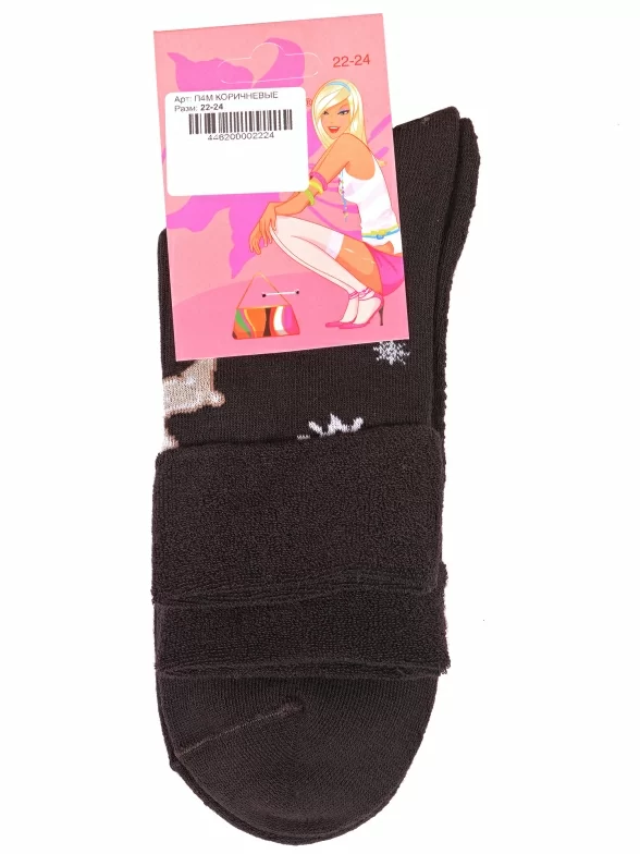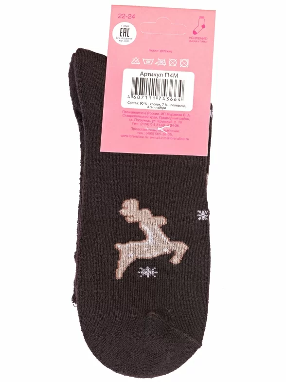 Межсезонные или зимние укороченные детские носки, цвет коричневый, теплые, махровые, с принтом, с отворотом, состав: 90% хлопок, 7% полиамид, 3% эластан (лайкра), арт. П4М. Производитель «ИП Мурзаков В.А., Ставропольский край, Россия» под брендом «Lorenzline».