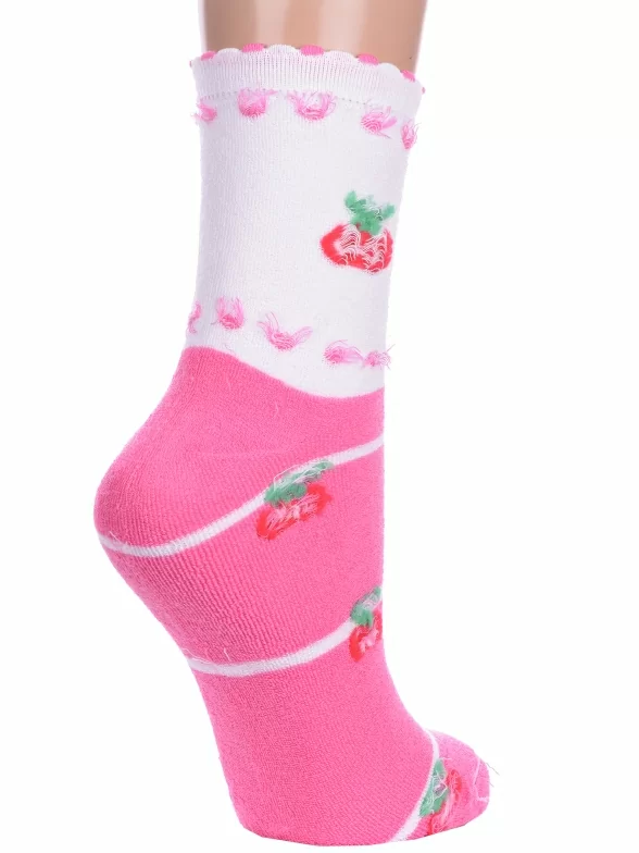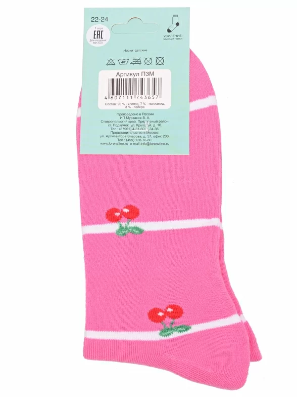 Межсезонные или зимние укороченные детские носки, цвет розовый, теплые, повседневные, махровые, возможно бесшовные, принт (рисунок): овощи / фрукты / ягоды, полоски, с узором, состав: 90% хлопок, 7% полиамид, 3% эластан (лайкра), арт. П3М. Производитель «ИП Мурзаков В.А., Ставропольский край, Россия» под брендом «Lorenzline».